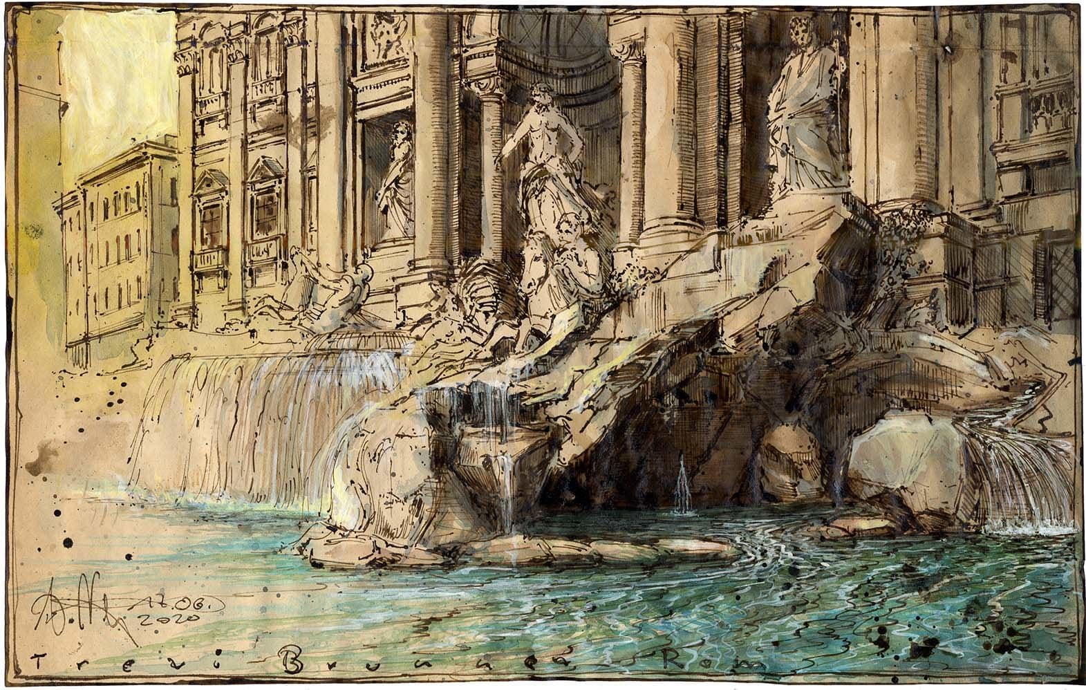 Trevi Brunnen21. Juni 202021. Juni 2020 Federzeichnung, Farbstift, Aquarell210 x 330 mmDvz. 136017.06.2020 Vorheriger BeitragFranz SchubertNächster BeitragDom von Siena
