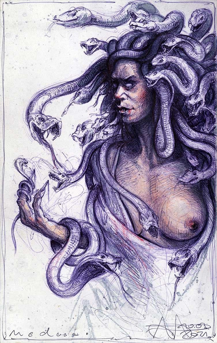 Medusa10. März 20213. Juni 2024 Kugelschreiber, Farbstift, AquarellDvz. 1458Format: 250 x 157 mm10.03.2021 Vorheriger BeitragOdysseus – Die Blendung des PolyphemNächster BeitragDie Geburt Athenes