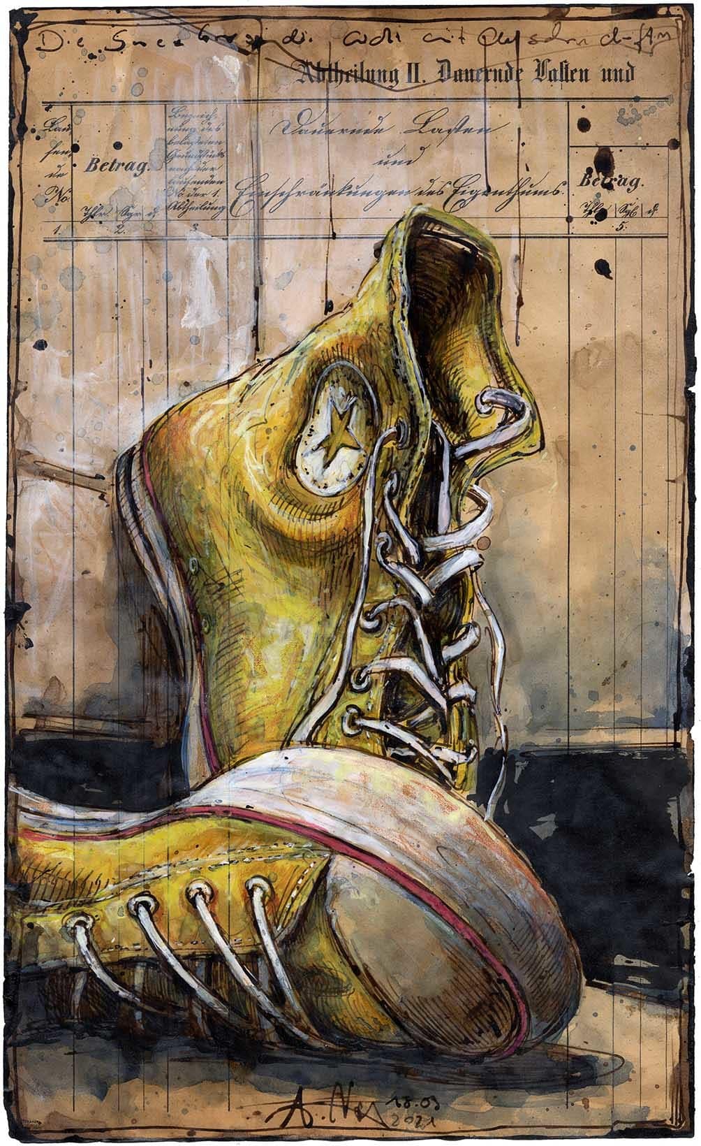 Die Sneakers, die nicht mit duschen durften18. März 202118. März 2021 Federzeichnung, Farbstift, AquarellDvz. 1461Format: 340 x 210 mm18.03.2021 Vorheriger BeitragPietaNächster BeitragGood Fellas