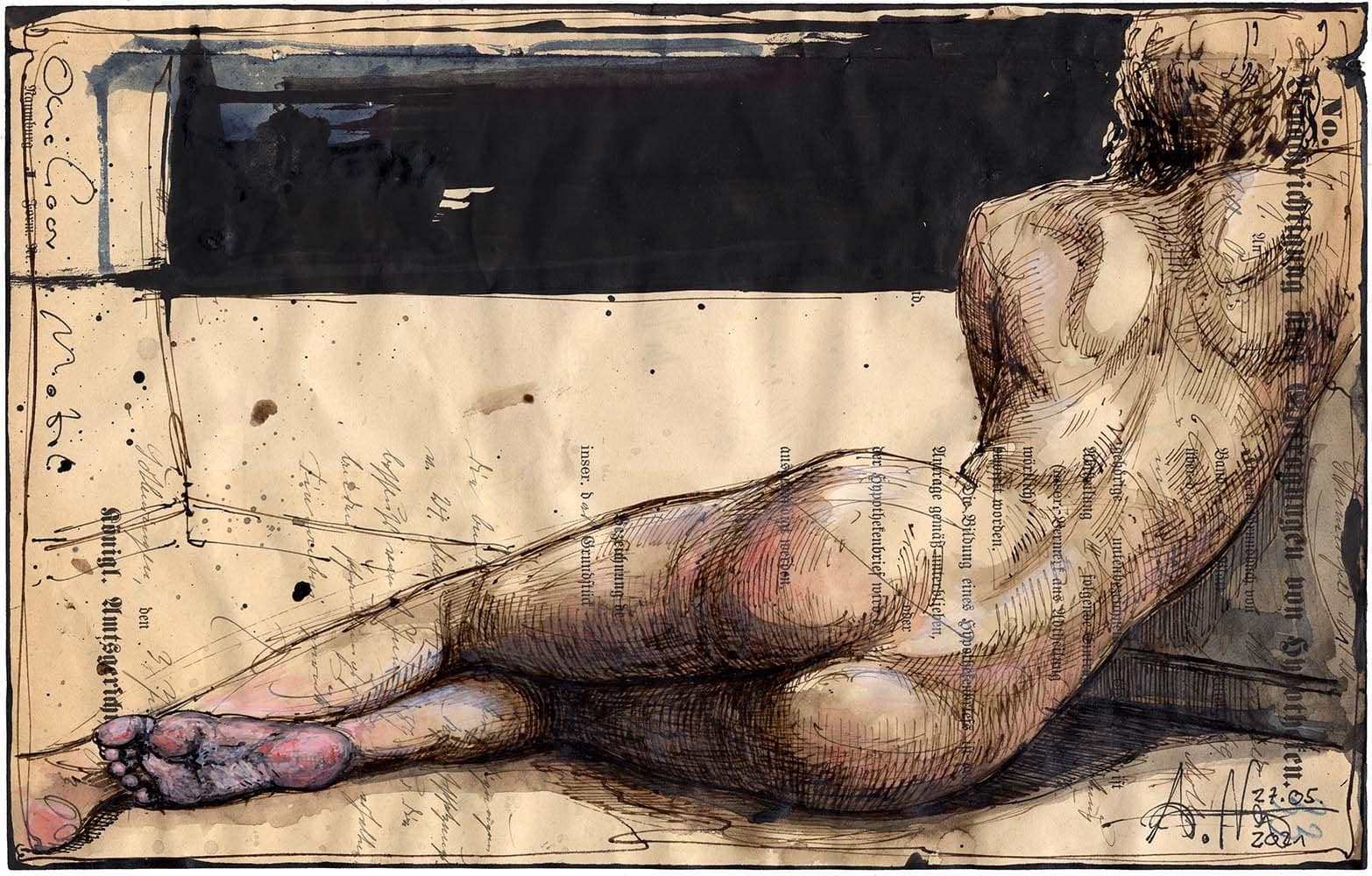One hour Motel28. Mai 20212. Juni 2021 Federzeichnung, Farbstift, AquarellDvz. 1486Format: 210 x 330 mm27.05.2021 Vorheriger BeitragAkt in ZwiellichtNächster BeitragKleiner Spiegel Akt