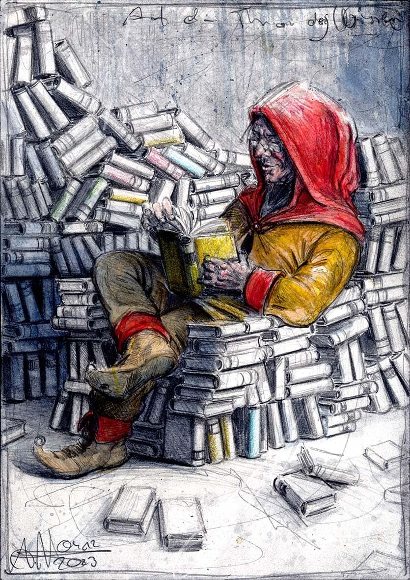 Auf dem Thron des Wissens28. Dezember 202328. Dezember 2023 Bleistift, Farbstift, AquarellDvz. 1714Format: 250 x 175 mm04.12.2023 Vorheriger BeitragBuchturmbau zu BabelNächster BeitragSogwirkung