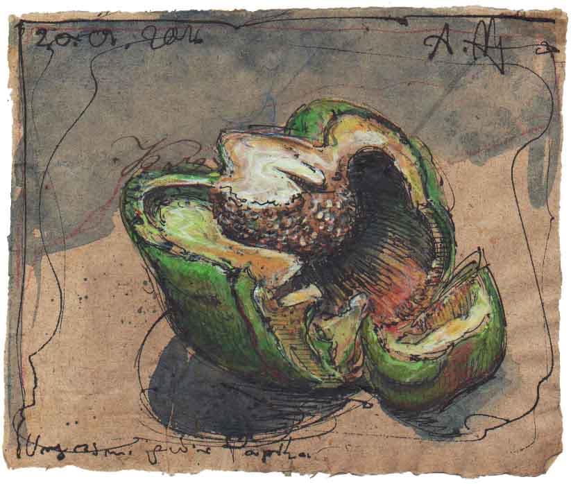 Vergessene grüne Paprika2. Dezember 20176. Februar 2018 Federzeichnung, Farbstift, Aquarell170 x 210 mmDvz. 46220.09.2016 Vorheriger BeitragTraurige, grüne PaprikaNächster BeitragSich langweilende rote Paprika