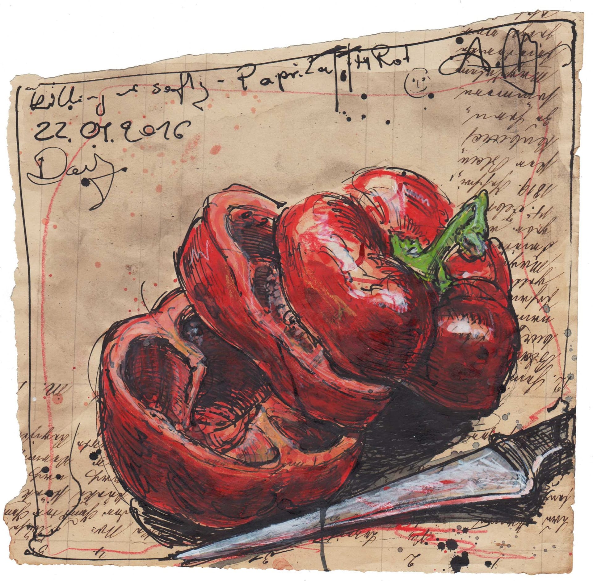 Killing me softly – Paprika in Rot2. Dezember 20176. Februar 2018 Federzeichnung, Farbstift, Aquarell205 x 205 mmDvz. 46422.09.2016 Vorheriger BeitragSich langweilende rote PaprikaNächster BeitragBeim häuten einer Zwiebel