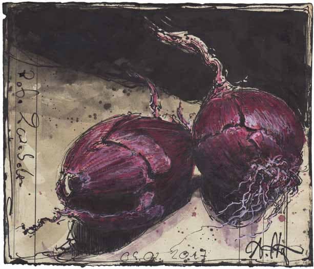 Rote Zwiebeln24. August 201729. August 2017 Federzeichnung, Farbstift, Aquarell180 x 210 mmDvz. 57709.02.2017 Vorheriger BeitragPaprika, klein, bunt und süssNächster BeitragDunkle Trauben
