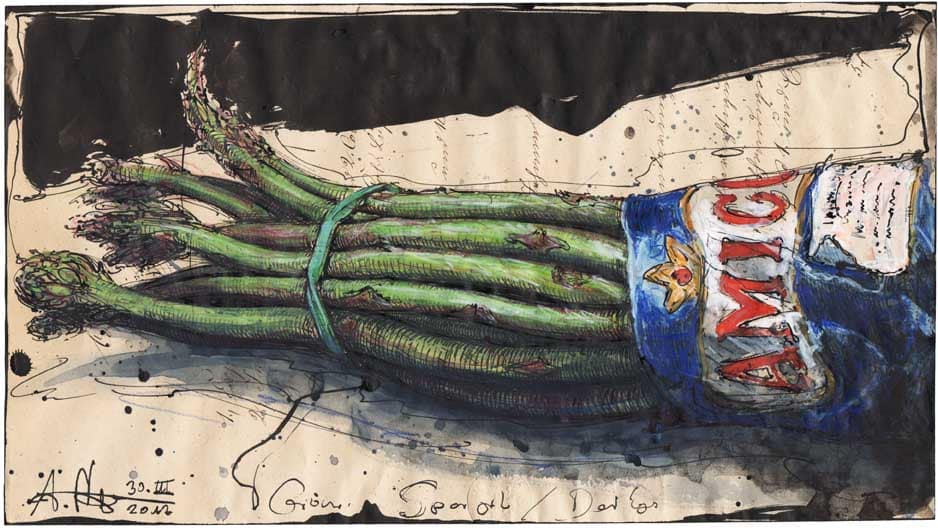 Grüner Spargel24. August 201727. August 2017 Federzeichnung, Farbstift, Aquarell185 x 330 mmDvz. 59930.03.2017 Vorheriger BeitragBrave BohnenNächster BeitragNarzis und Goldmund
