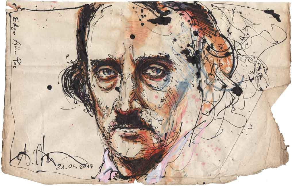 Edgar Allen Poe24. August 201724. August 2017 Federzeichnung, Farbstift, Aquarell225 x 350 mmDvz. 61530.01.2017 Vorheriger BeitragArthur MillerNächster BeitragBob Dylan