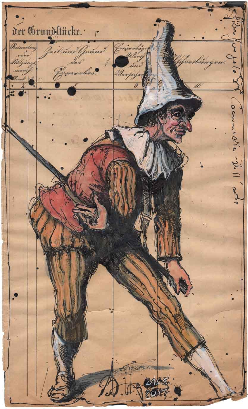 Giangurgolo30. August 201730. August 2017 Federzeichnung, Farbstift, Aquarell345 x 210 mmDvz. 66921.06.2017 Vorheriger BeitragPagliaccioNächster BeitragPulcinella