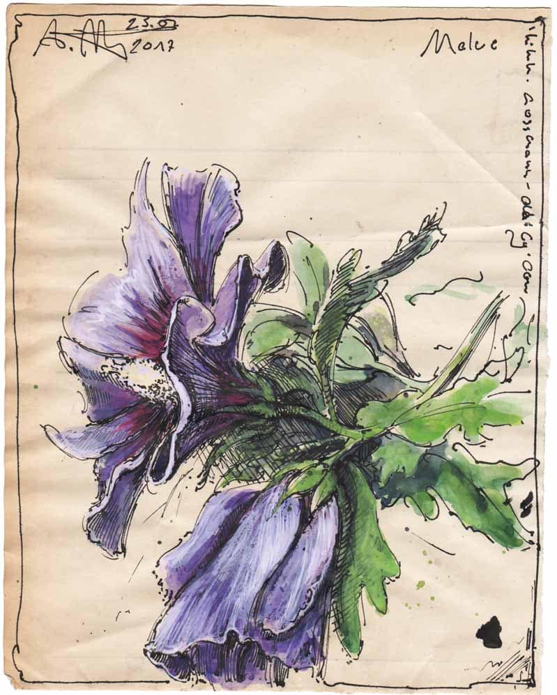 Malve24. August 201724. August 2017 Federzeichnung, Farbstift, Aquarell210 x 165 mmDvz. 69225.07.2017 Vorheriger BeitragVon dem gescheiterten Versuch eine Zitrone mit den Fingern zu schälenNächster BeitragGänzlich erötete Lauchzwiebel