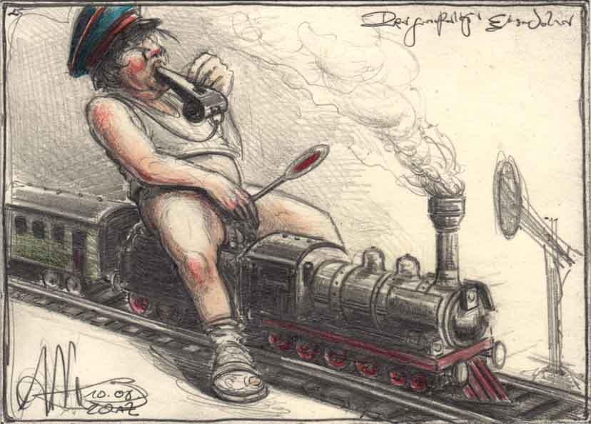 Der großartige Eisenbahner31. August 20172. September 2017 Bleistift, Farbstift, Aquarell125 x 175 mmDvz. 70910.08.2017 Vorheriger BeitragAb in den politischen AlltagNächster BeitragIn Zeiten des Wohlstandes