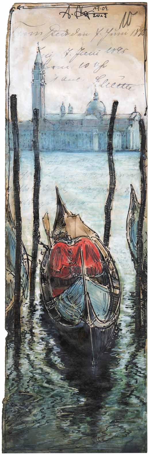 Gondola18. September 201718. September 2017 Federzeichnung, Farbstift, Aquarell330 x 110 mmDvz. 73917.09.2017 Vorheriger BeitragTage in Venedig IV.Nächster BeitragGondolas