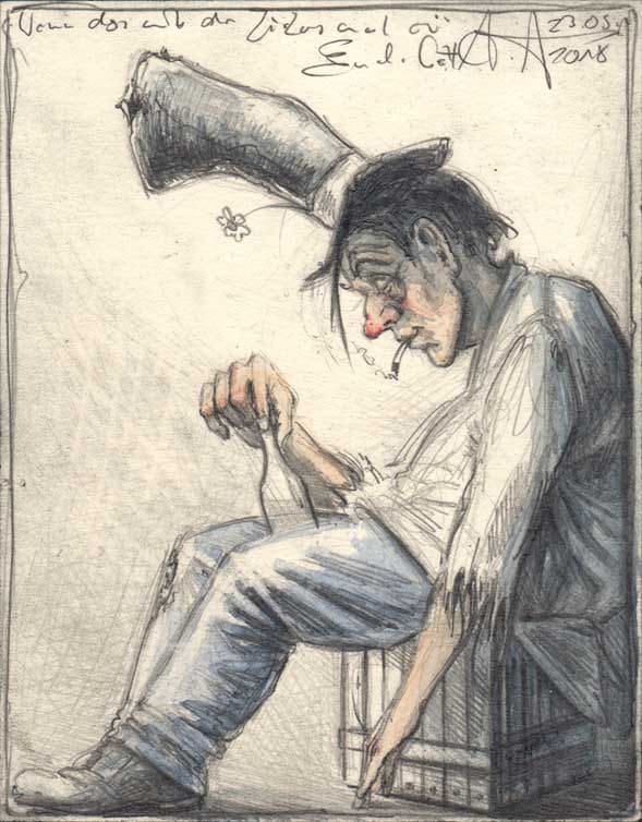 Wenn das mit dem Zirkus mal ein Ende hat20. Juni 201820. Juni 2018 Bleistift, Farbstift, Aquarell175 x 125 mmDvz. 91823.05.2018 Vorheriger BeitragSchlechter Atem ist kein ScheidungsgrundNächster BeitragSchwartzwutz: Alle Tiere sind gleich, aber manche sind gleicher