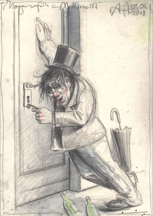 Morgensfrüh um Mitternacht20. Juni 201820. Juni 2018 Bleistift, Farbstift, Aquarell175 x 125 mmDvz. 92902.06.2018 Vorheriger BeitragSchwartzwutz: Alle Tiere sind gleich, aber manche sind gleicherNächster BeitragAbkotzen über der Reling