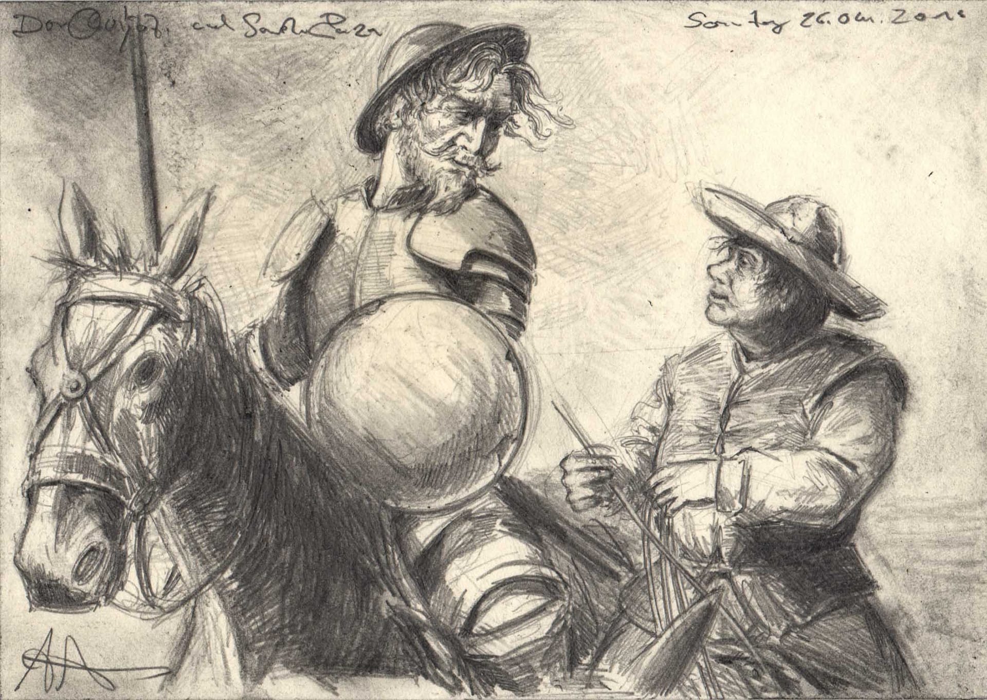 Don Quijote und Sancho Panza20. August 201820. August 2018 Bleistift125 x 175 mmDvz. 626.04.2015 Vorheriger BeitragSancho Panza auf seinem EselNächster BeitragDon Quijote reitet gegen die Windmühlen