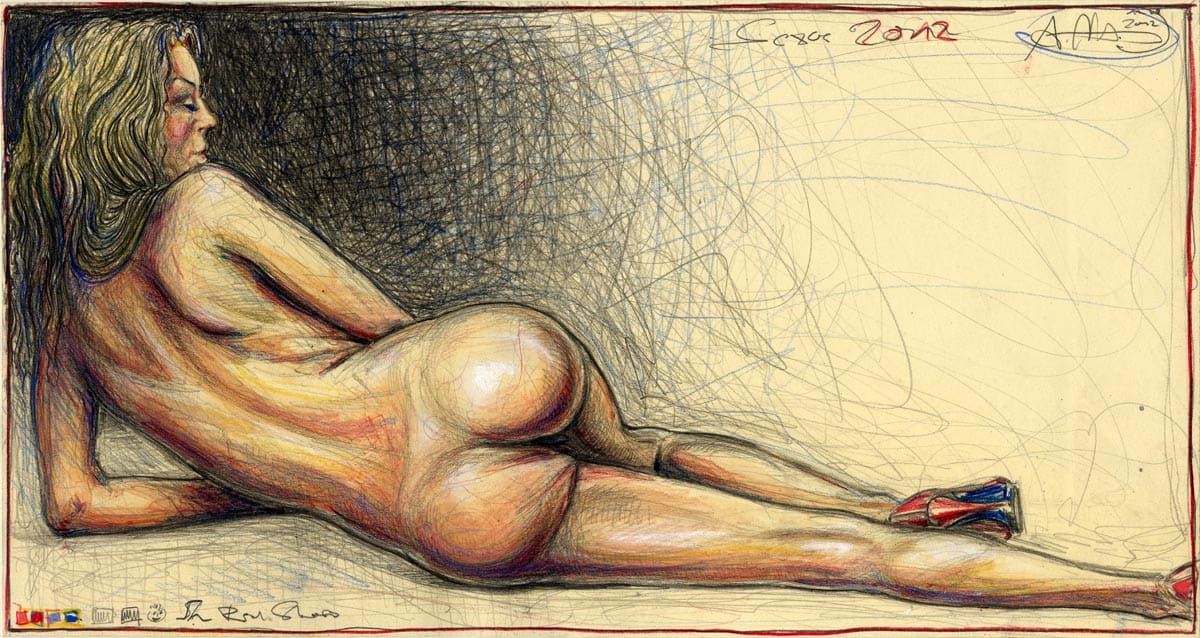 Federzeichnung, Farbstift, Aquarell, Tusche, Pastell, Collage