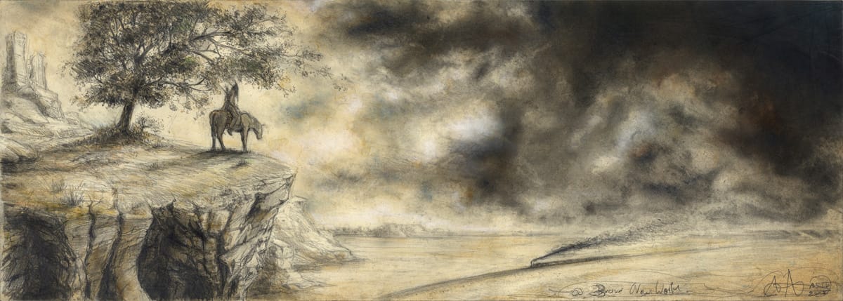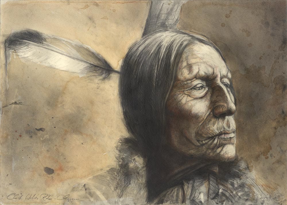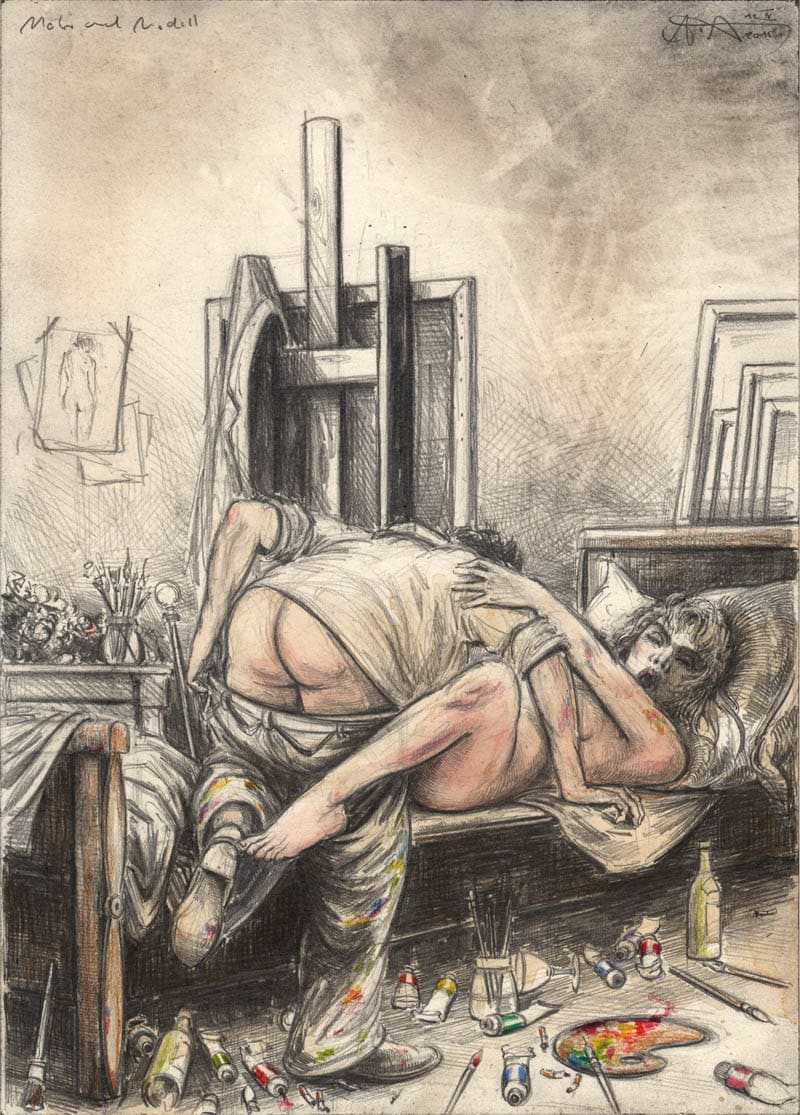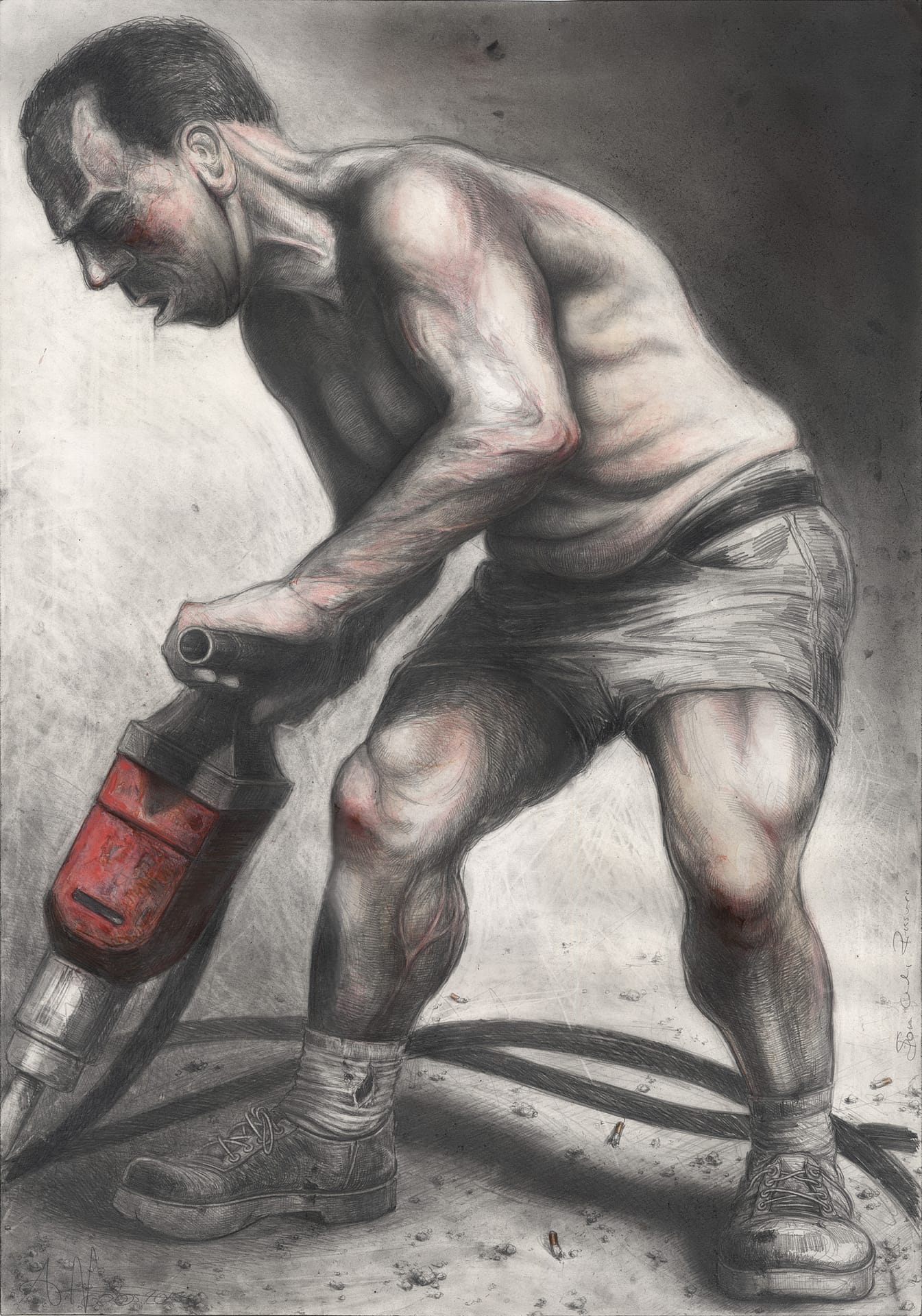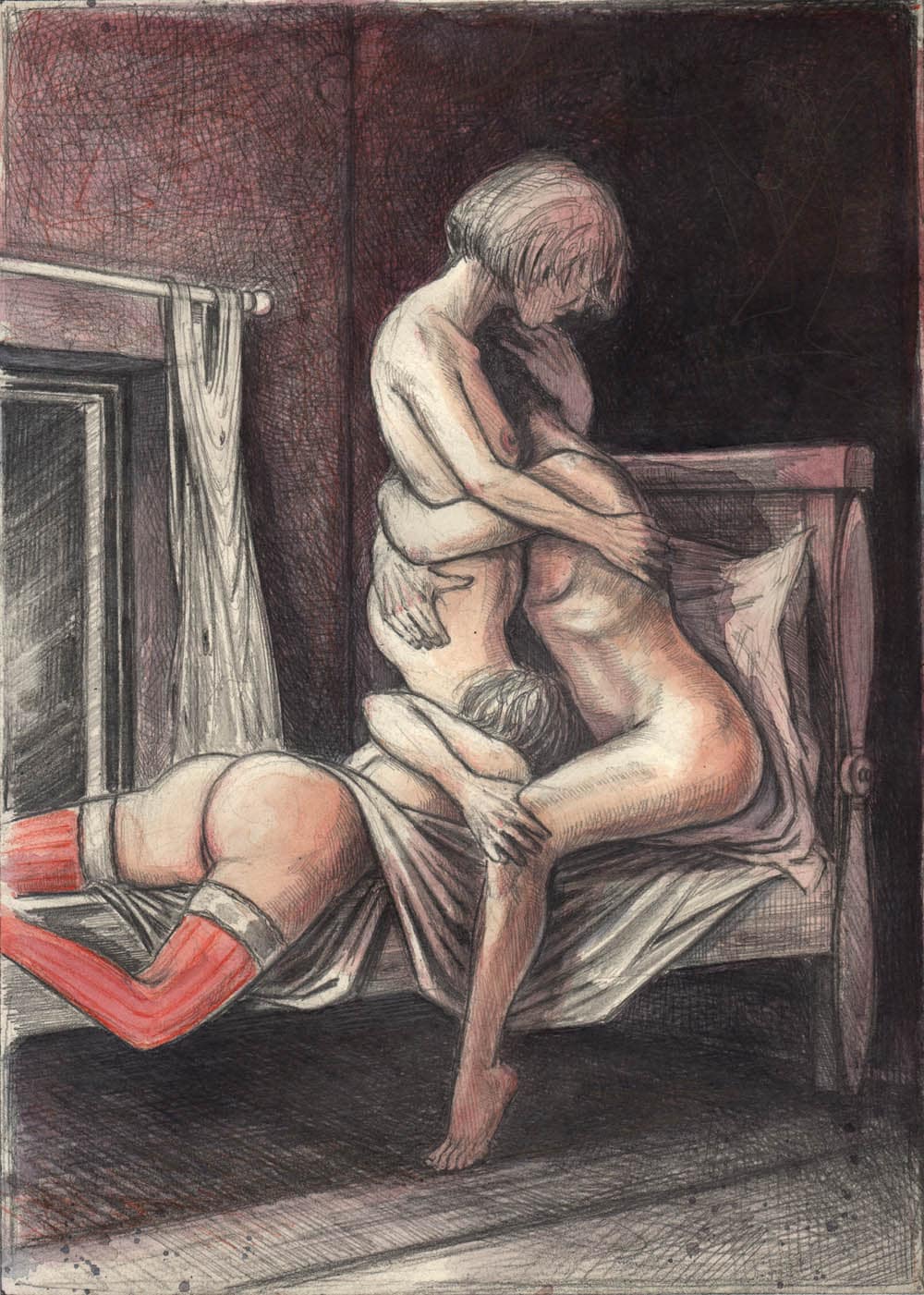Bleistift, Farbstift, Kaffee, Pastell, weiße Tusche