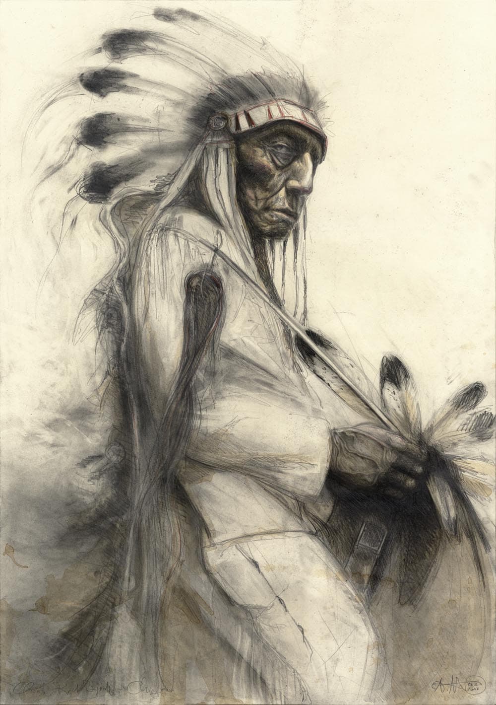 Bleistift, Kaffee, Pastell, weiße Tusche