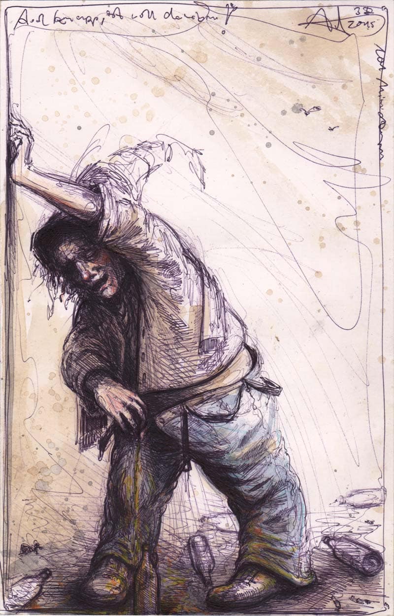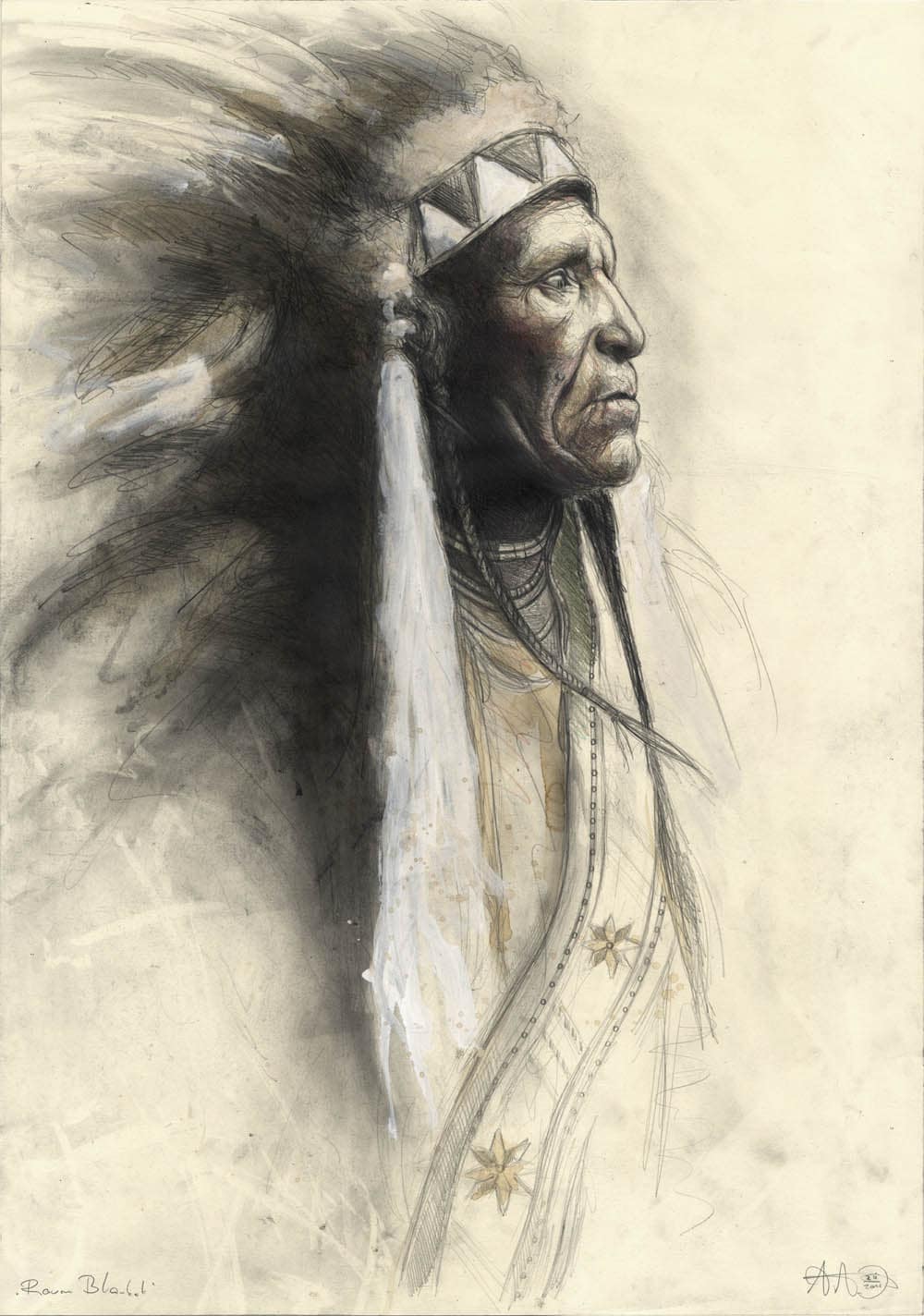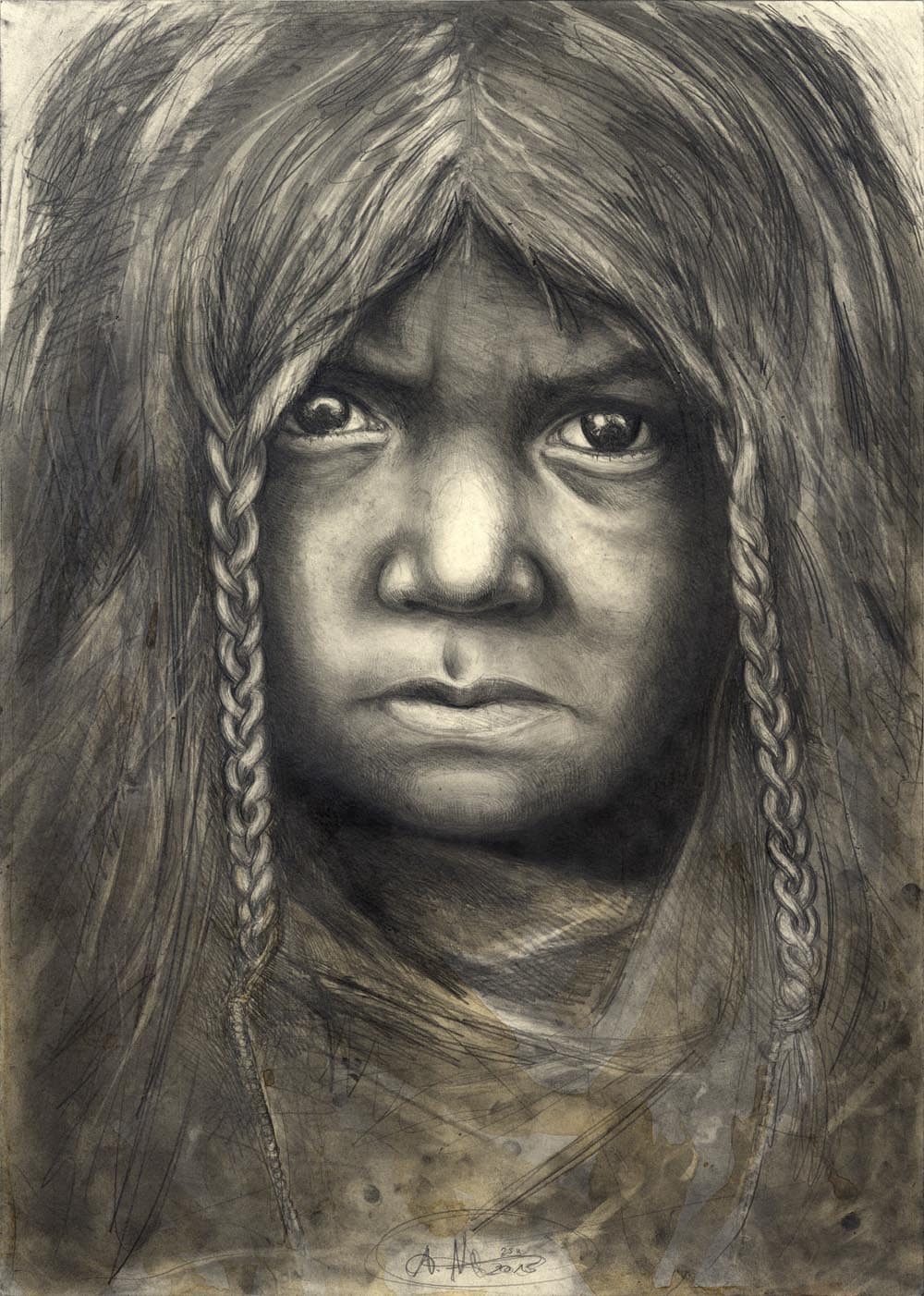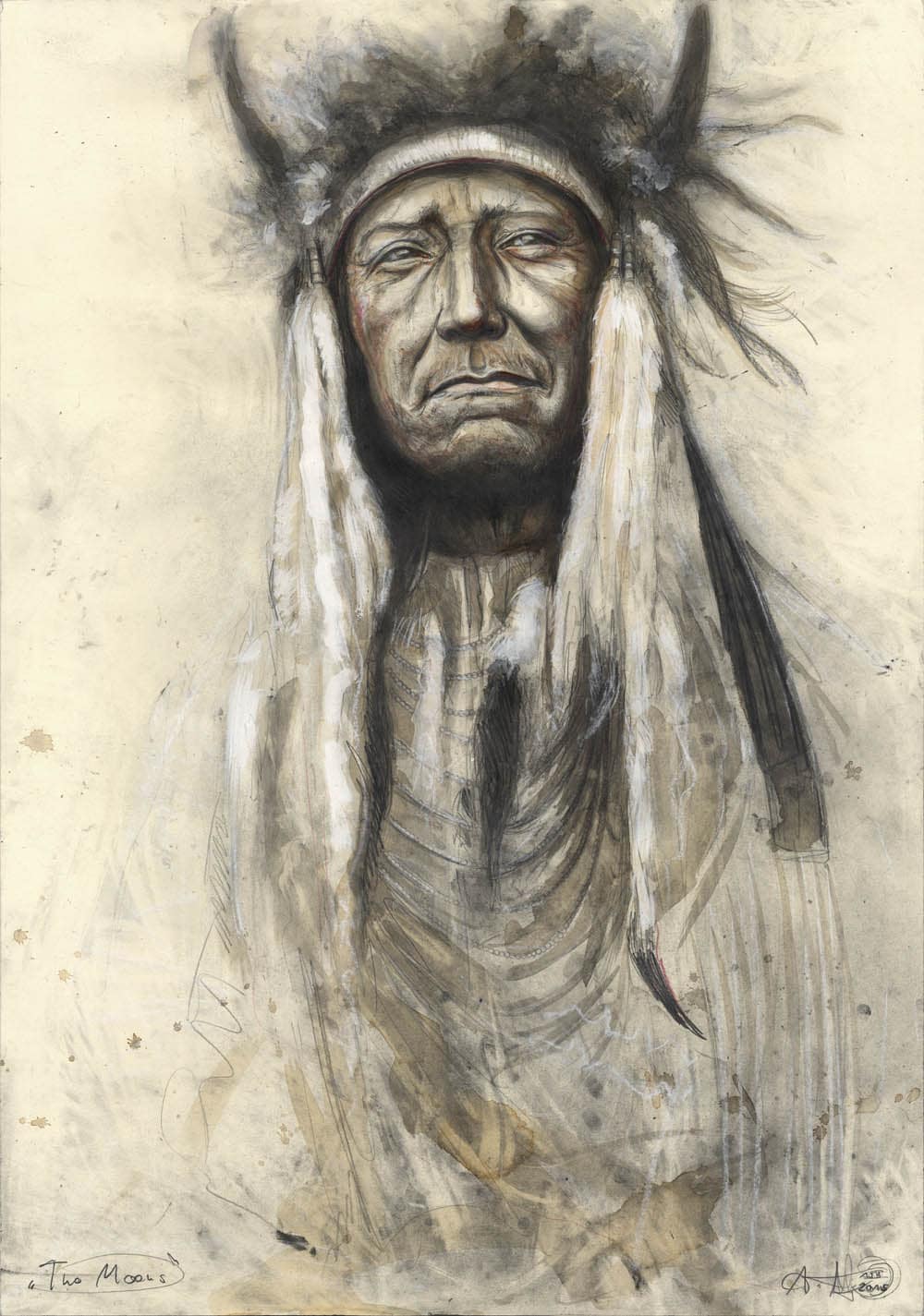 Bleistift, Farbstift, Kaffee, Pastell, weiße Tusche