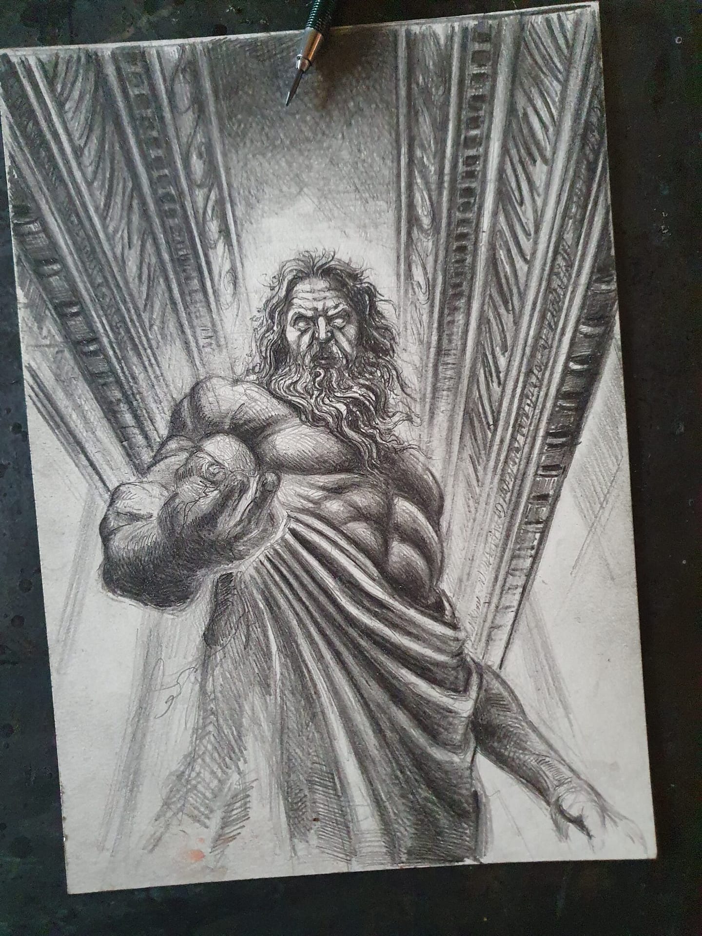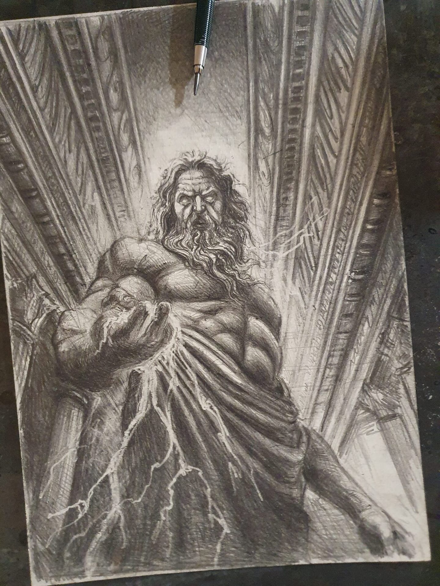 Die Waffe wurde von den Kyklopen erschaffen, den einäugigen Riesen, die für ihre Schmiedekunst bekannt waren. Die Kyklopen wurden von Zeus befreit, als dieser gegen seinen Vater Kronos und die Titanen kämpfte. Die Titanen hatten die Kyklopen in den Tartarus verbannt, eine düstere Unterwelt. Nachdem Zeus sie aus ihrem Kerker befreit hatte, schenkten sie ihm als Dank die Fähigkeit, Blitze zu schleudern.