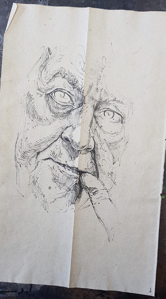 Federzeichnung, Farbstift, Aquarell