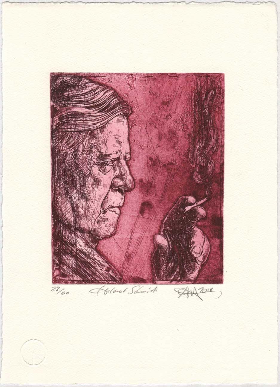 Nun genug des Geschreibsels, dennoch abschließend noch drei weitere kleine Arbeiten an Schmidtportraits. U.a. sogar eine recht erfolgreiche Radierung – alles aus dem Jahr 2015. Aber ich vermute einmal, bei aller Bewunderung für Helmut Schmidt, das war es jetzt auch mal …