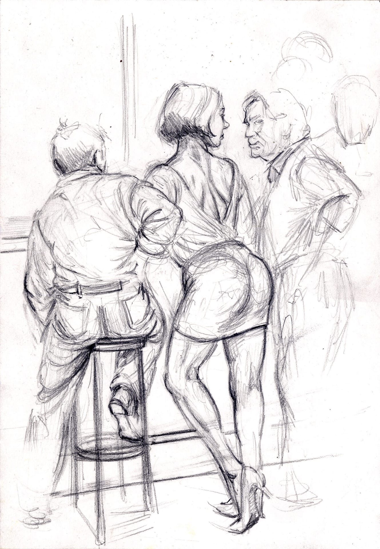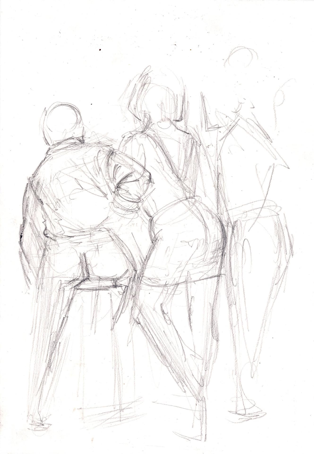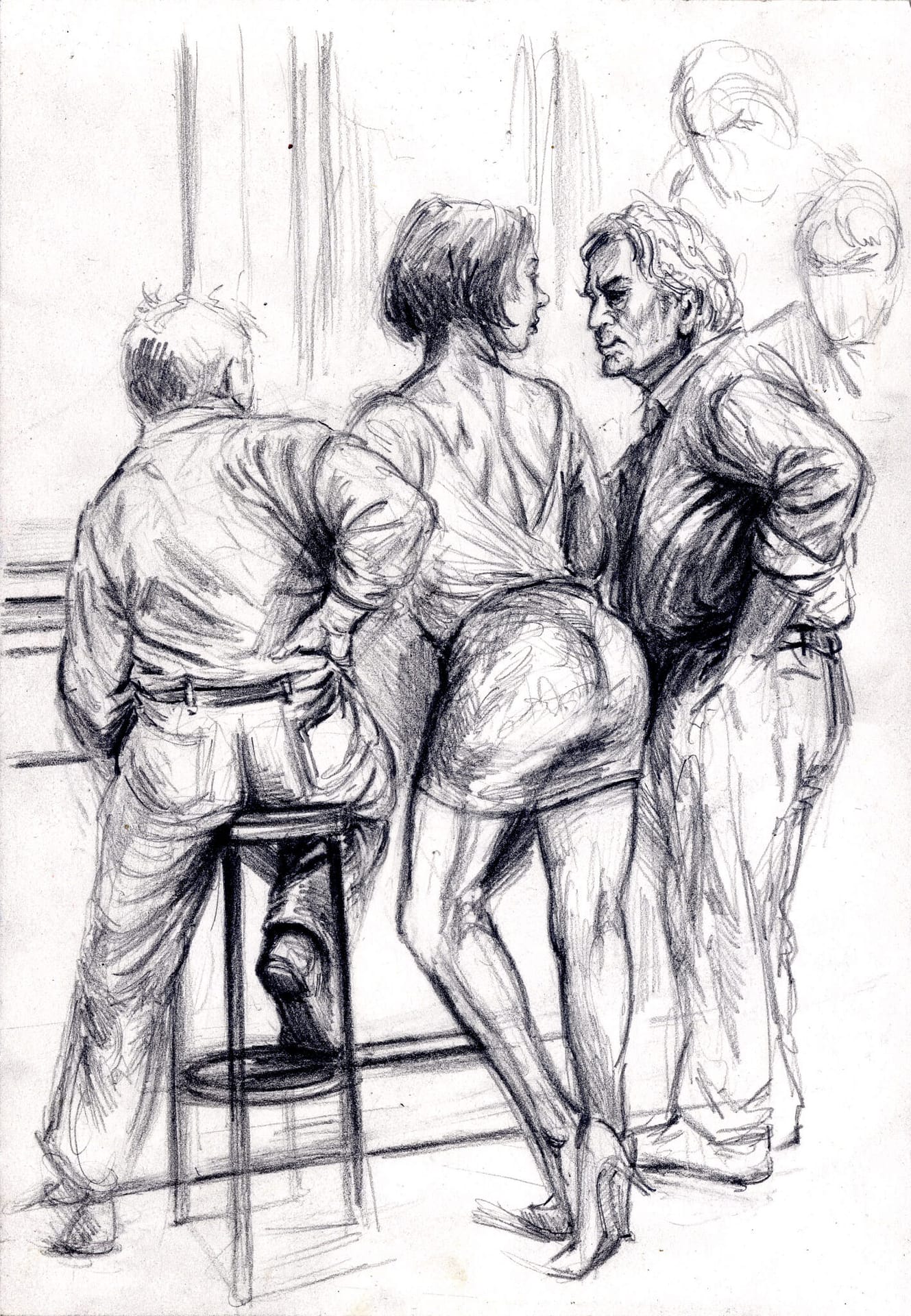 Hier erneut eine kleine Arbeit zum Thema Misfits. Durch die obige Bildreihe wird wieder gut deutlich, wie sich die Bleistiftzeichnung entwickelt – von der reinen Andeutung der Figuren bis hin zu dessen plastischen Ausarbeitung. Auch hier ist die Farbe kein Bild bestimmendes Element, sondern eher ein liebenswertes Plus.