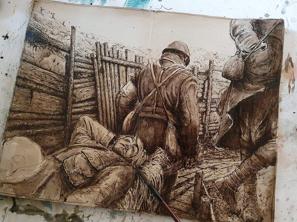 Erst im 19. Jahrhundert wurde so langsam, auch seitens des Militärs, das Bergen und pflegen all jener, auf den Schlachtfeldern Verwundeter, zunehmend als verpflichtende, gesellschaftliche Notwendigkeit akzeptiert. Doch in der Praxis, in den Wirren und Unwägbarkeiten eines solch großen Gemetzels, wie der Apokalypse des Ersten Weltkrieges, war die Hoffnung eines Verwundeten auf Rettung dennoch eher düster. Wenn dann doch im Niemandsland von Sanitätern aufgelesen, dann unter größten Schmerzen auf einer einfachen Bahre zur Stellung zurückgetragen werden konnte, bestand zumindest ein Mindestmaß an Hoffnung, tatsächlich in einem der hinter der Frontlinie gelegenen, provisorisch eingerichteten Lazarette, notdürftig versorgt zu werden. Vielleicht hätte sich aber sogar im Nachhinein der ein oder andere Glückliche sogar gewünscht, man hätte ihn besser im Labyrinth der Apokalypse vergessen.