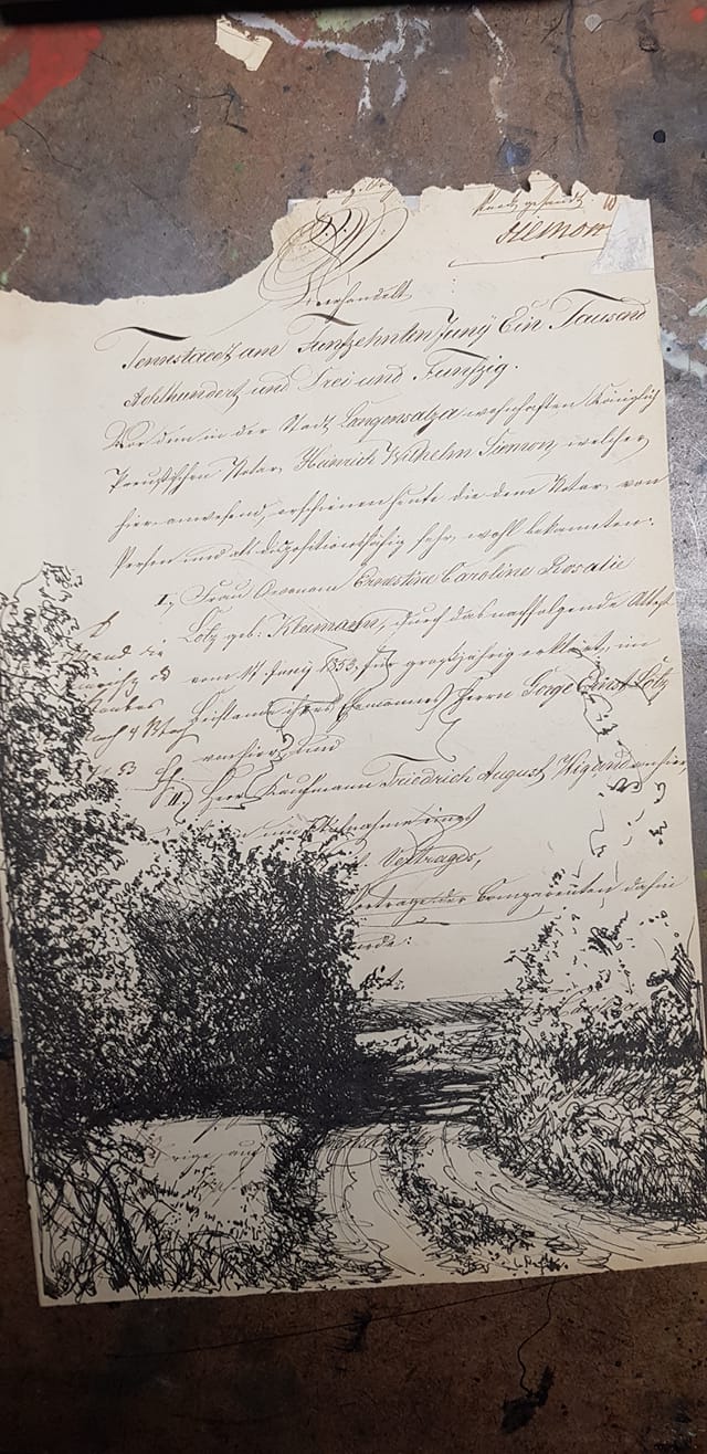 Federzeichnung, Farbstift, AquarellWvz. 5119Format: 330 x 210 mmOktober 2018