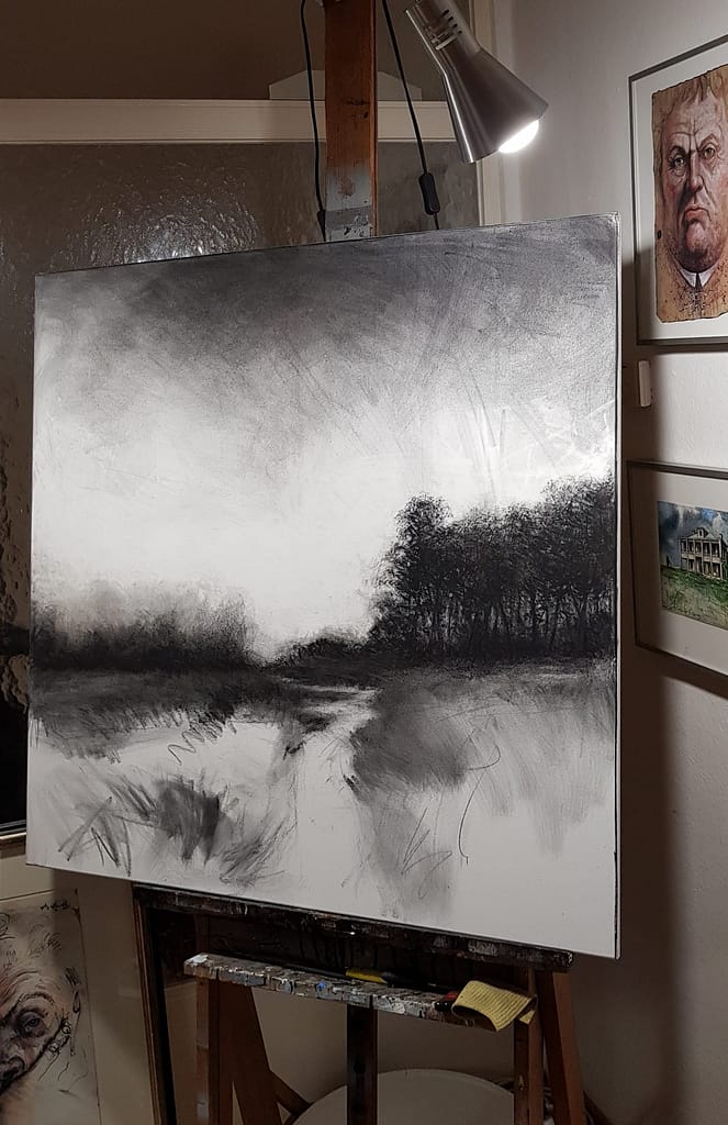 Kohle, und erst recht die Leinwand, haben eigentlich nie so richtig in dieses verinnerlichte Konzept gepasst – was mich aber auch irgendwie immer gewurmt hat. So bin ich eigentlich recht froh darüber mal diesen einen Schritt erneut gewagt zu haben und mich dem eher gänzlich flächigem Schwarz hinzugeben – und dies sogar auf einer großen Leinwand. Ein Schritt den ich nicht bereut habe, denn das für mich durchaus gelungene, und schon zweite Ergebnis in dieser Art, stimmt mich zuversichtlich für Neues.