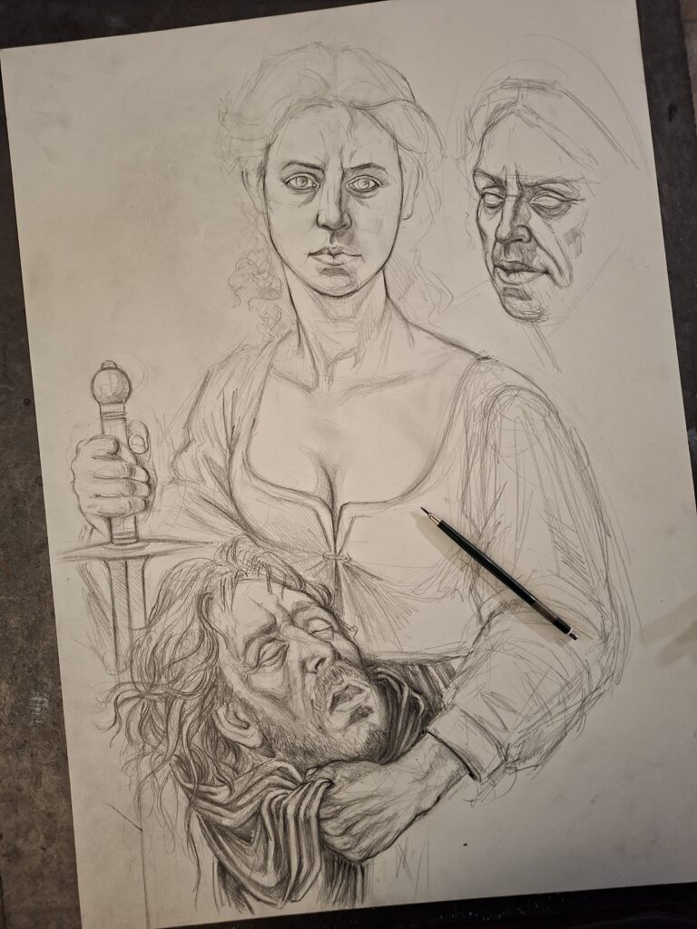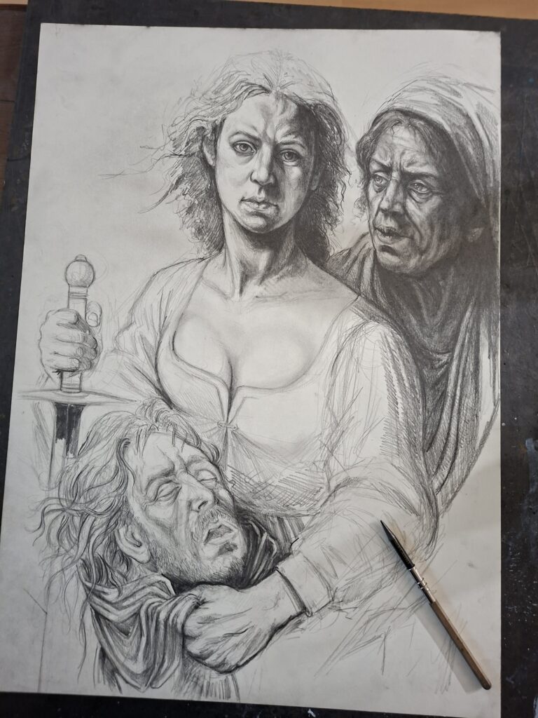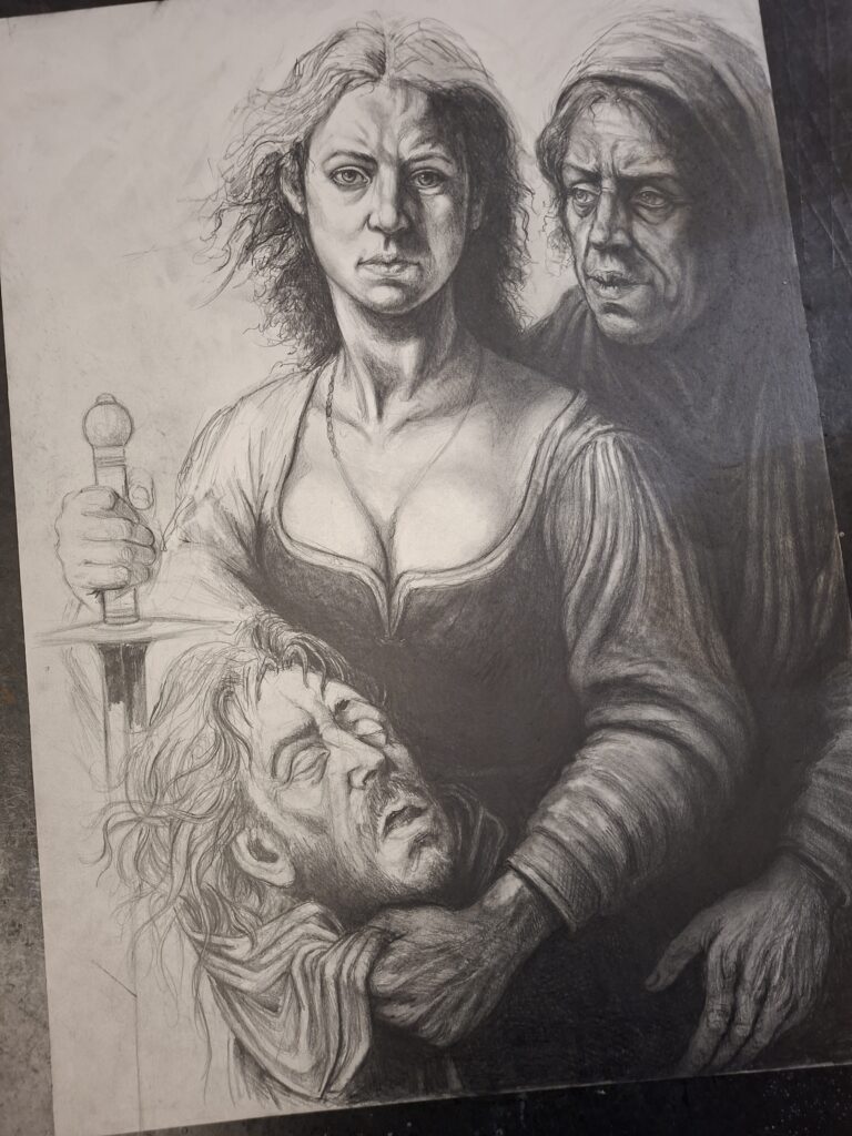 Die Geschichte von Judith und Holofernes gehört zu den eindrucksvollsten Erzählungen der biblischen Literatur und ist vor allem im Buch Judit überliefert, das in der griechischen Septuaginta (auch griechisches Altes Testament genannt – die älteste durchgehende Übersetzung der hebräisch-aramäischen Bibel in die altgriechische Alltagssprache, die Koine) seinen Platz fand. Sie ist keine historische Chronik, sondern eine theologisch-symbolische Erzählung, die den Mut einer einzelnen Frau gegen die Übermacht eines feindlichen Feldherrn ins Zentrum stellt. Judith erscheint darin als reiche, schöne und kluge Witwe aus der Stadt Betulia, deren Mann Manasse früh verstorben war. Gerade durch ihre Unabhängigkeit konnte sie selbst bestimmt handeln und sich ganz ihrem Glauben widmen. Sie wird als tief religiös, rhetorisch begabt und von großer Entschlossenheit beschrieben. Als die Stadtältesten angesichts der Belagerung durch Holofernes die Hoffnung verlieren und zur Kapitulation neigen, tritt Judith hervor, ermahnt sie zum Vertrauen auf Gott und entwickelt einen kühnen Plan. Sie verlässt die Stadt, begibt sich in das Lager des Feindes und gewinnt durch ihre Schönheit und Klugheit das Vertrauen des Generals. Bei einem Fest, das Holofernes veranstaltet, nutzt sie den Moment, als er betrunken einschläft, und enthauptet ihn mit seinem eigenen Schwert. Mit dem abgeschlagenen Kopf kehrt sie nach Betulia zurück, wo ihr Volk neuen Mut fasst, die Belagerer, die angesichts des verstümmelten Leichnams ihres Anführers in Panik verfallen, besiegt und Israel rettet. Judith wird dadurch zur Heldin, deren Tat in Kunst und Literatur bis heute als Symbol für Glauben, Mut und weibliche Stärke gilt.