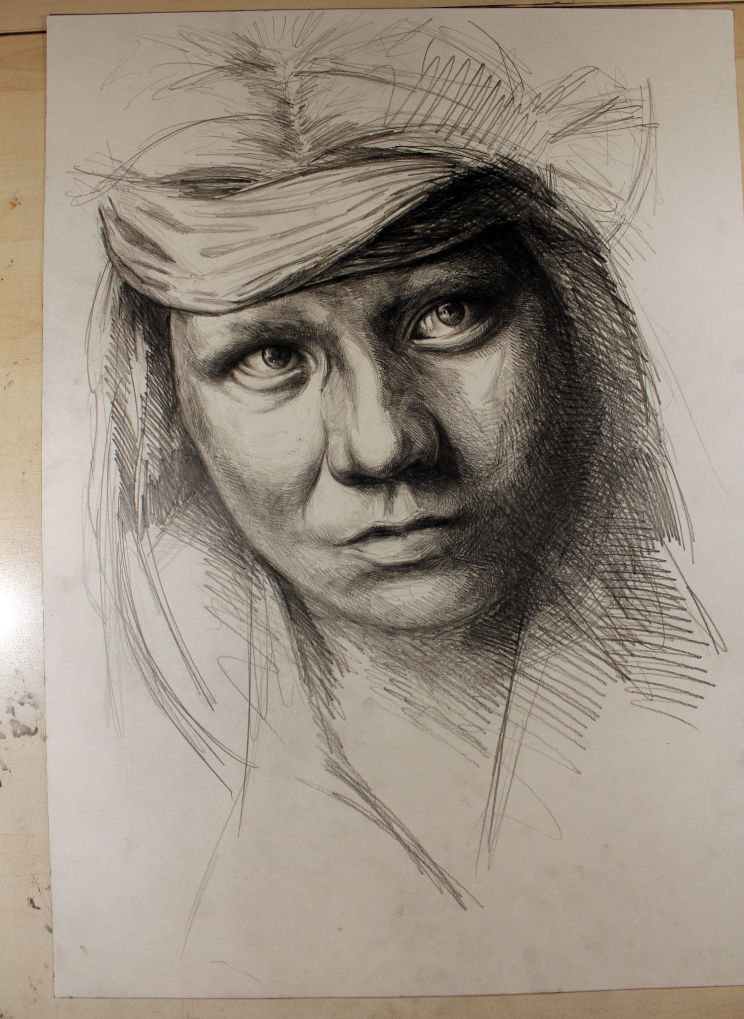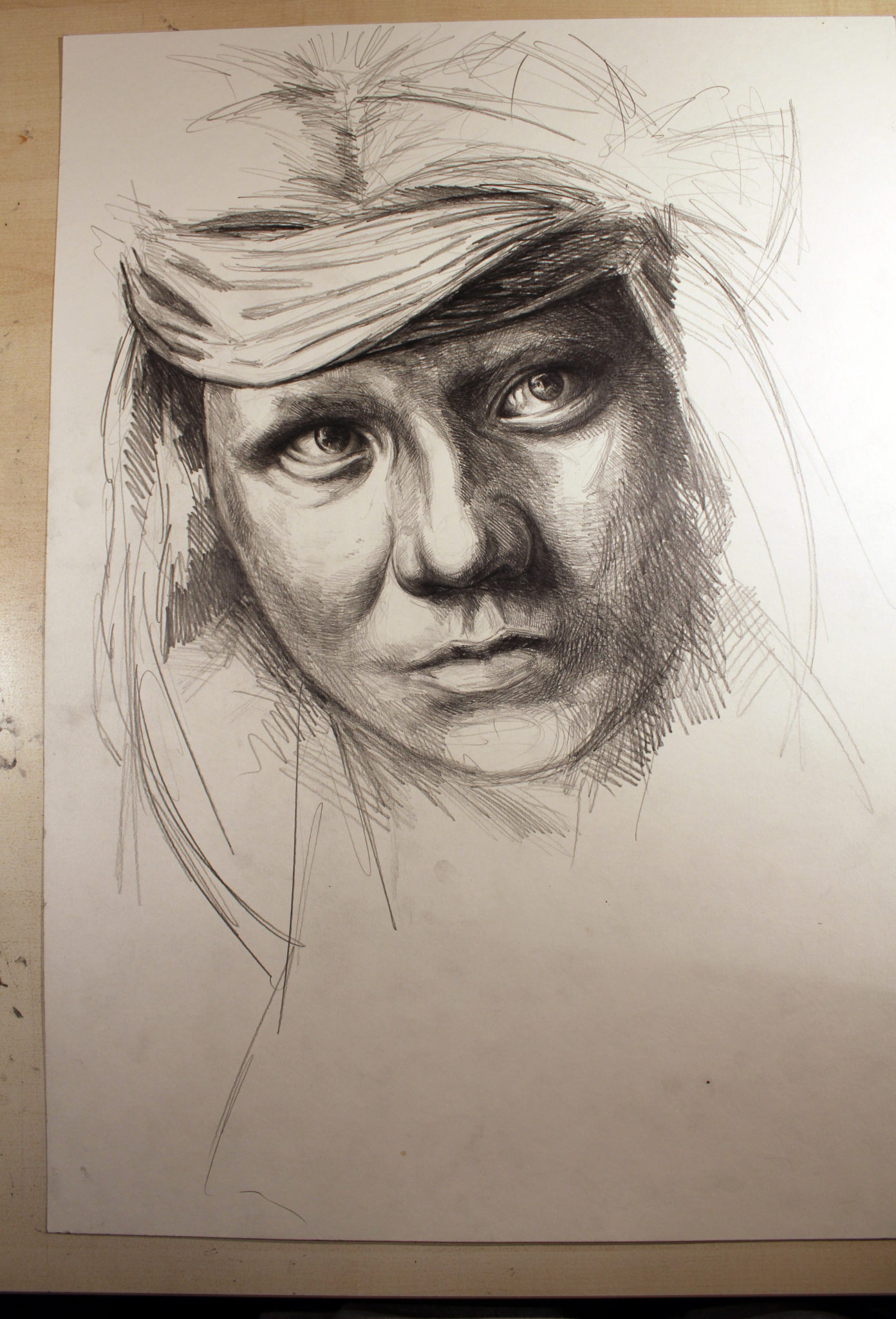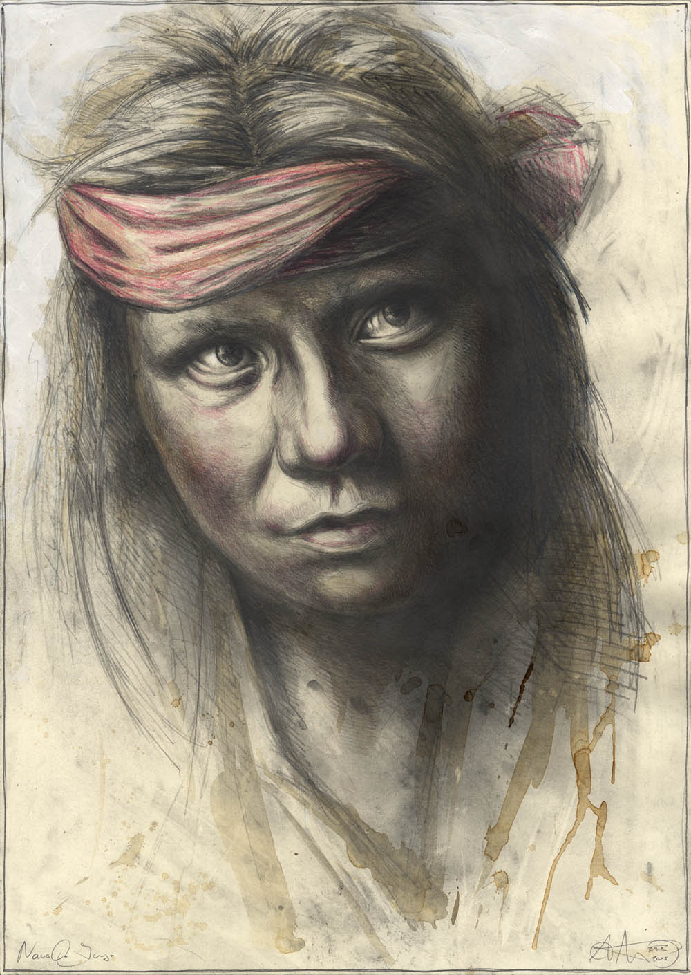 Bleistift, Kaffee, Farbstift, weiße Tusche