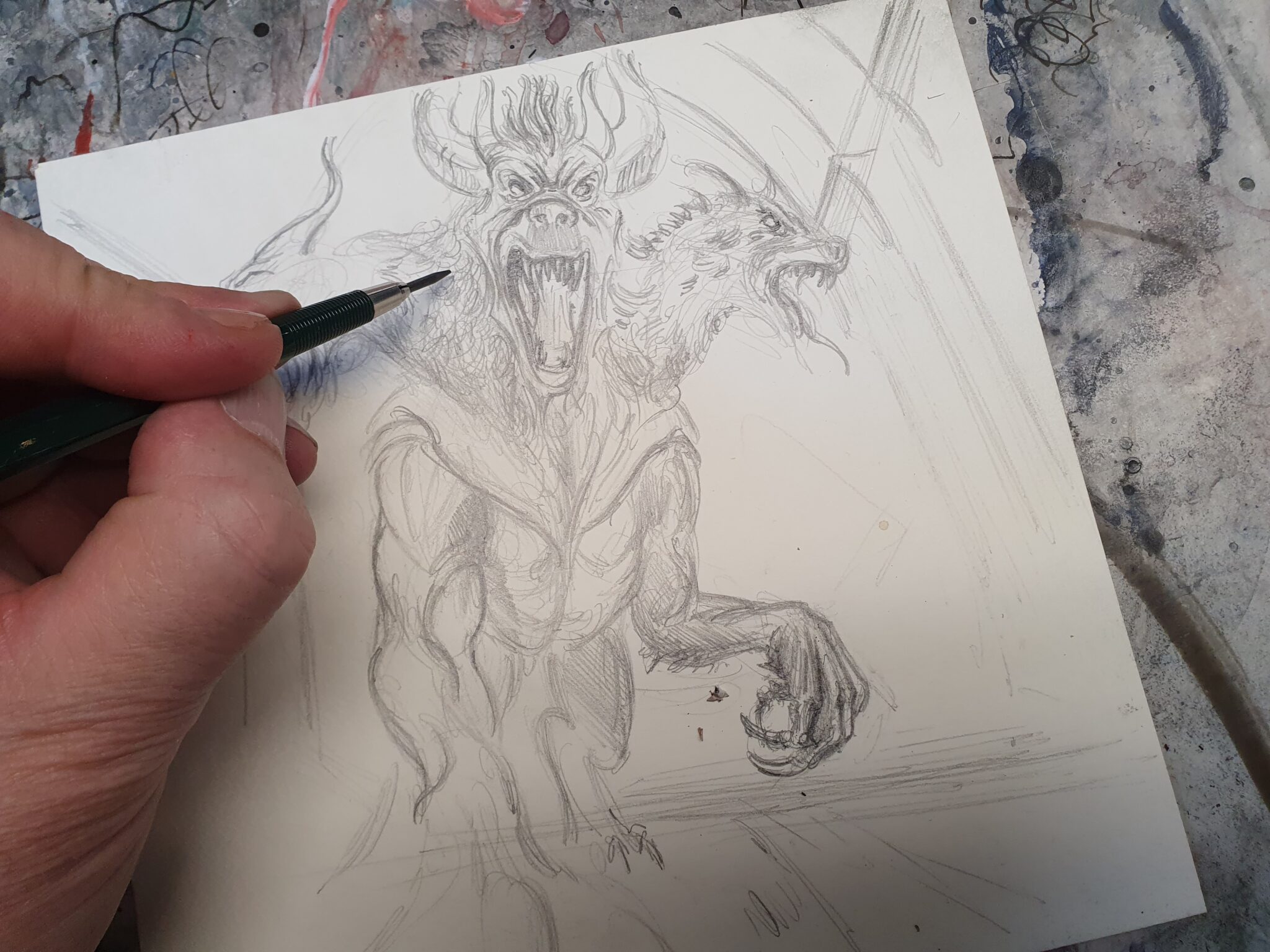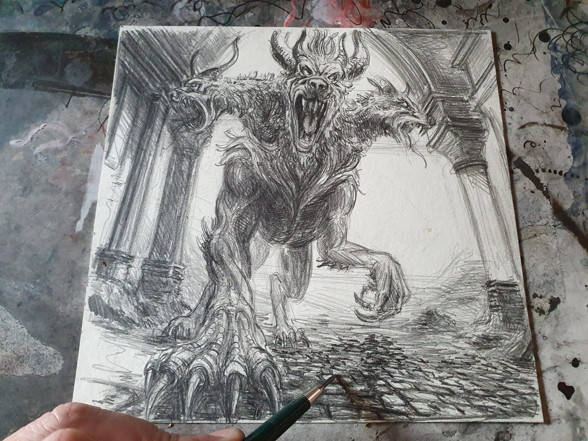 Kerberos, ist ein Dämon aus altvorderen Zeiten, als Chaos noch allein die Welt umgab. Er ist der Torwächter zur Unterwelt von Hades und Persephone, der Welt der Toten. Er wird beschrieben als ein riesiger Hund mit drei Köpfen, einem furchterregenden drachenähnlichen Aussehen und einem ohrenbetäubenden Gebrüll, das alle ankommenden Seelen, die Charon über den Styx gebracht hat, zunächst in Angst und Schrecken versetzt. Wer zu fliehen versucht, wird in Stücke gerissen, verspeist und die Überreste zurück in den schwarzen FLuss geworfen. Wer ehrfürchtig das Tor zur Unterwelt passiert, vorbei an Kerberos, dem wird nun endgültig klar: Es gibt keine Rückkehr in die Welt der Lebenden. Der Tod ist unumkehrbar.