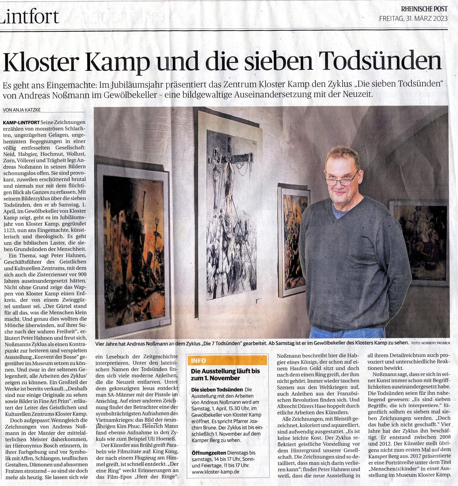 Kamp-Lintfort · Es geht ans Eingemachte: Im Jubiläumsjahr präsentiert das Zentrum Kloster Kamp den Zyklus „Die sieben Todsünden“ von Andreas Noßmann im Gewölbekeller – eine bildgewaltige Auseinandersetzung mit der Neuzeit. Wann die Ausstellung eröffnet wird.