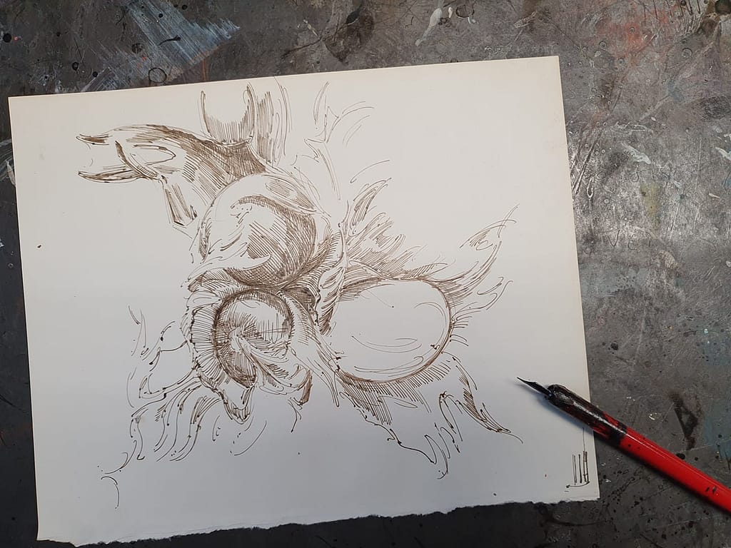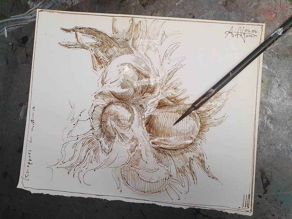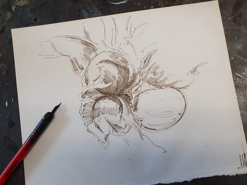 Denn im Grunde auch mal wieder hier – eine recht wohlgefällige Federzeichnung, hinsichtlich eines überaus dankbaren Motivs. Aber – was wie immer so wie „mal nebenbei gekrizelt“ erscheint, bedarf schon einer gewissen Geduld und Zeitaufwand, welcher auch nicht zu unterschätzen ist.