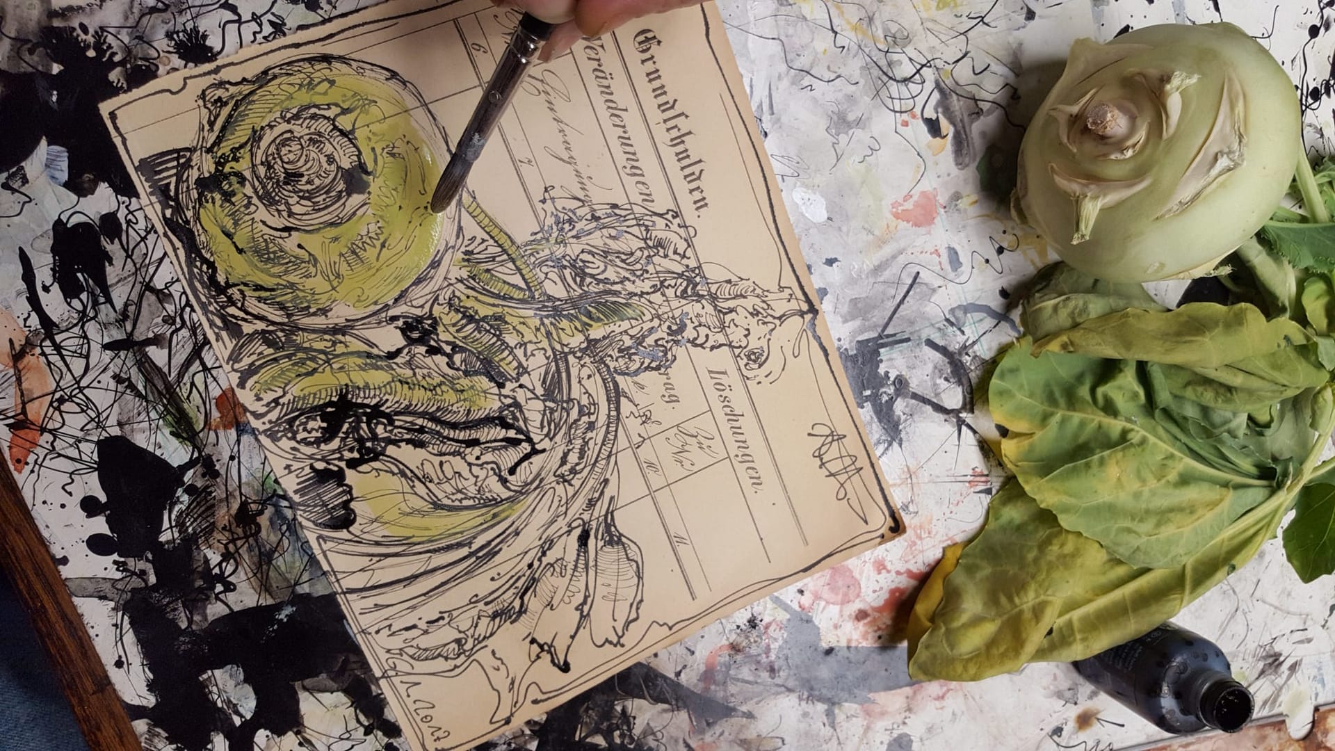 KohlrabiArbeiten - Step by Step10. Januar 201710. Januar 2017 http://www.nossmann.com/wp-content/uploads/2017/01/blubb1.mp4 17 x 21 cm, Federzeichnung, Aquarell, Farbstift Views: 0Vorheriger BeitragAuch ein Kohl ist nicht hohl – WirsingNächster BeitragZwei neue, ungewöhnliche Kunstdrucke …
