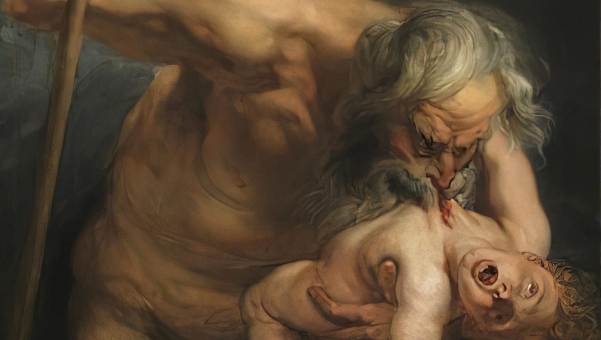 Der Titan Kronos nimmt nach dem Sieg über seinen Vater Uranos seine Schwester Rhea zur Frau. Seine Mutter Gaia sagt ihm aber voraus, dass auch eines seiner eigenen Kinder, welche aus dieser Verbindung hervorgehen, ihn selbst einst zu Fall bringen werden wird. So sieht er sich zu jener bekannten Perversion genötigt, all die Neugeborenen seiner Gemahlin sofort zu „verschlucken“ – zu verschlucken wie gesagt, und nicht wie so oft dargestellt (und ich nehme mich auch nicht davon aus), wirklich zu verspeisen.
