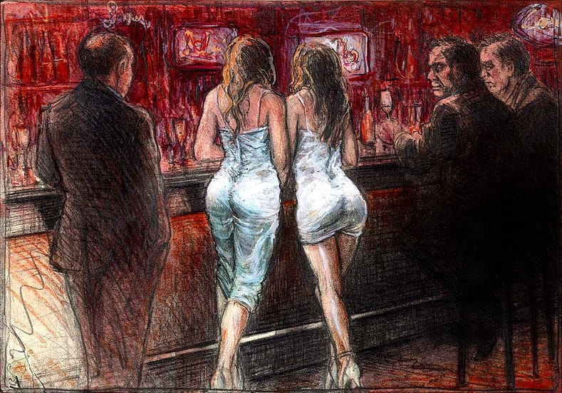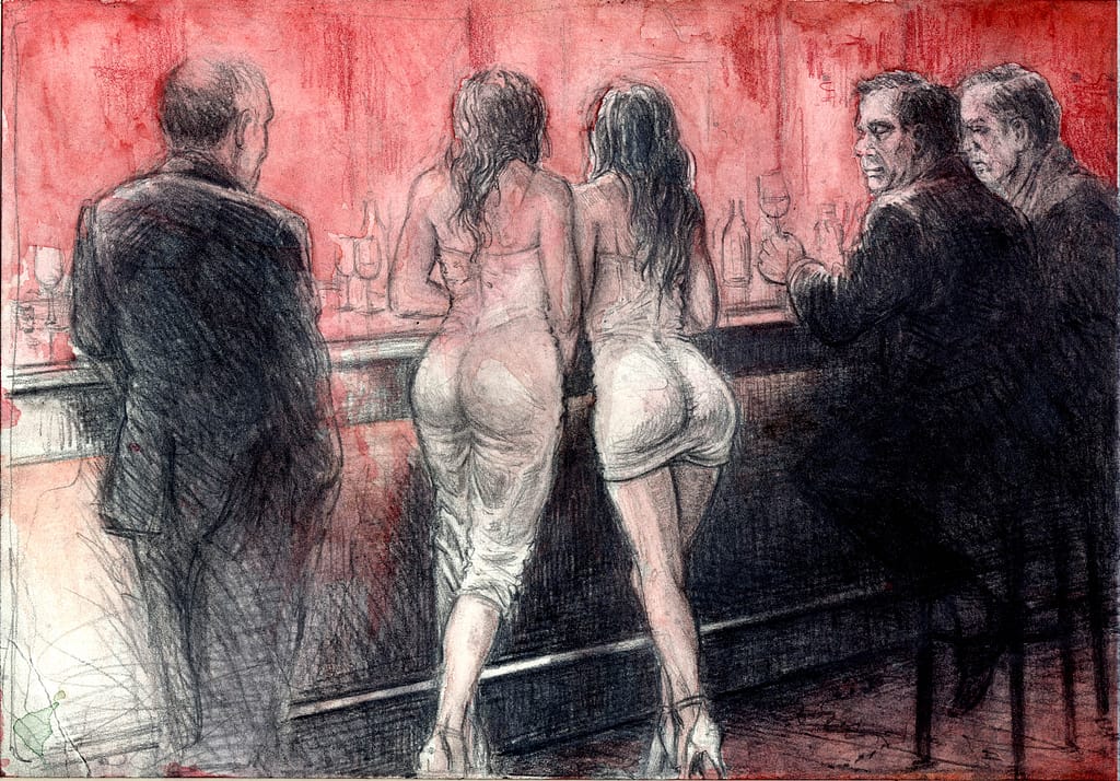Nach meinen neuerlichen, zeichnerischen Ergänzungen hinsichtlich Misfits, eine weitere neue, kurz und knappe Bar und Club Szene, ganz im Sinne der Nachtschwärmer. Denn es ist kaum anzunehmen, dass es sich hier um einen kleinen Drink an der Bar auf einer Konfirmationsfeier handelt. Die Entstehung dieses kleinen Blattes, habe ich einmal mehr in mehreren Schritten festgehalten. Und das folgende Video hierzu, ist eigentlich selbsterklärend.