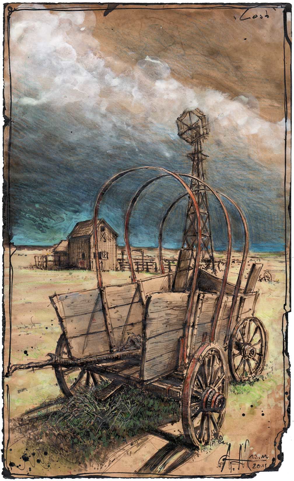 Doch die Wirklichkeit war natürlich eine andere! Denn was bis heute, vor allem bei den Amerikanern, immer noch gerne als einstiger Pioniergeist glorifiziert wird, war im Grunde bei den damaligen Protagonisten, die mit nichts aus dem Nichts kamen, nicht mehr als der Mut der Verzweifelung. Die Wagnis, dass sich ganze Familien, auf nur wenigen Habseligkeiten und das Notdürftigste beschränkend, verstaut auf einen von ein, zwei Pferden gezogenen Holzkarren und nur mit einer übergezogenen Plane gegen Wind und Wetter geschützt, sich auf einen schier endlosen Weg machten, dessen Ziel damals eher nebulös erschien, ist mit reiner Abenteuerlust und Pioniergeist eben nicht zu erklären.