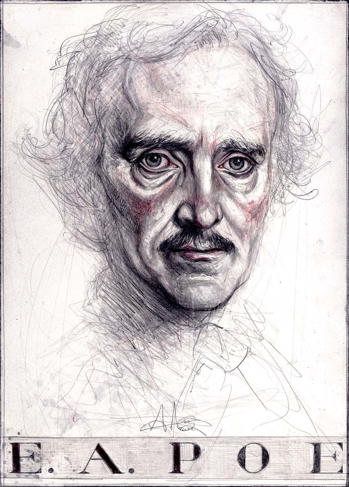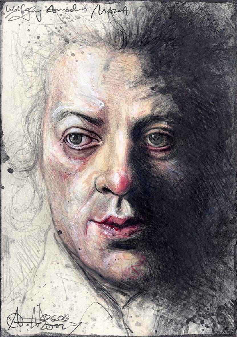 Nun, dies ist nicht die erste Zeichnung, welche ich diesem großen Mann widme, wie oben zu sehen ist, doch diese neue unten, ist mal ganz anders. Denn das Problem bei Portraits ist generell natürlich, dass von vielen Zeitgenossen des 19ten Jahrhunderts noch keine Fotos entstehen konnten, in der Regel nur idealisierte Zeichnungen und Gemälde bekannt sind und auf eine kleine Auswahl beschränkt als Vorlage dienen könnten. Und diese sind zumeist eher suboptimal. Diese neue Zeichnung allerdings entstand, so wie auch zu Mozart, Luther, Poe und Robbespierre, nach einer forensischen, digitalen Rekonstruktion, in diesem Fall, nach einer Version von Hadi Karami. In wie weit nun diese 3D Rekonstruktionen dem Protagonisten näher kommen, als die zeitgenössischen Gemälde und Zeichnungen – keiner weiß es am Ende wirklich. Aber sie wirken ein stückweit natürlicher.