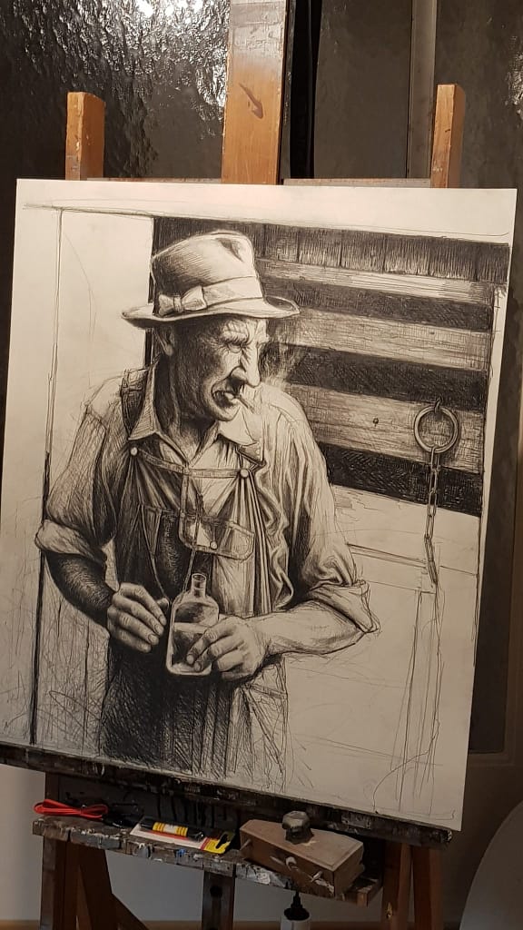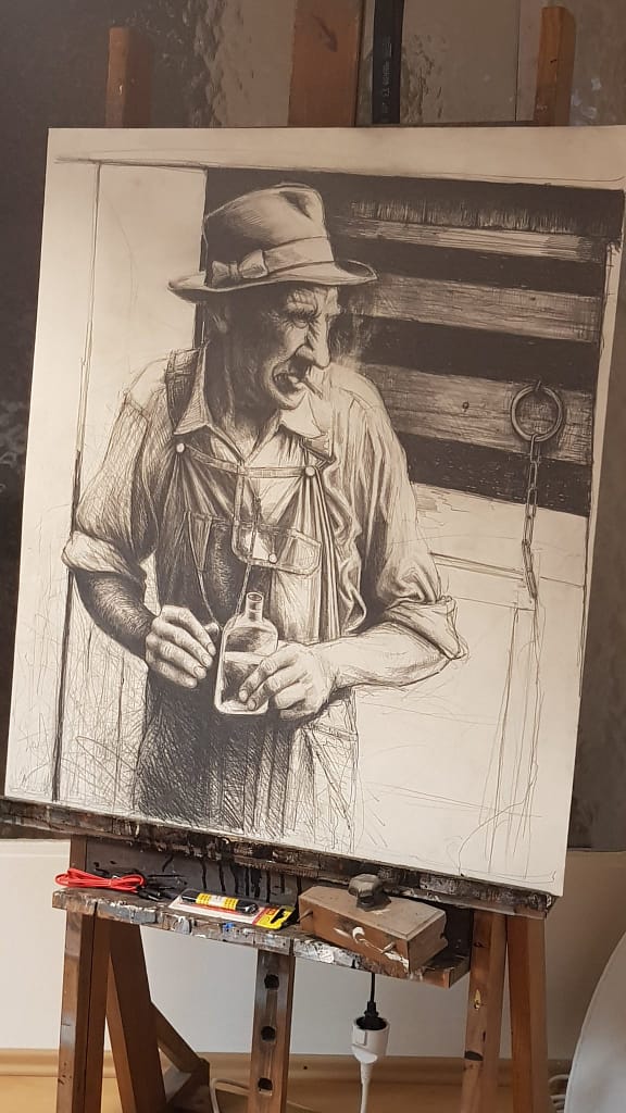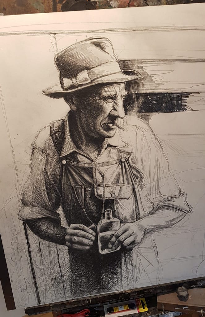 Es braucht immer eine gewisse Zeit um mir selber darüber klar zu werden, ob mir eine Arbeit wirklich gelungen ist oder eher weniger. Selbst die vermeintlich Gelungenen tun sich dann auch noch schwer zu einem meiner wenigen Lieblinge aufzusteigen. Mein Jack hat es geschafft mich nachhaltig selbst zu beeindrucken. Dabei ist mir nicht wirklich klar warum eigentlich. Denn die Komposition ist eigentlich nicht besonders spannungsvoll, die Farbgebung eher zurück genommen – aber vielleicht ist es hier eben genau das Unaufdringliche, eher die vielen kleinen Details die verführen und natürlich das Thema, was dieses große Blatt mir so an Herz wachsen ließ.