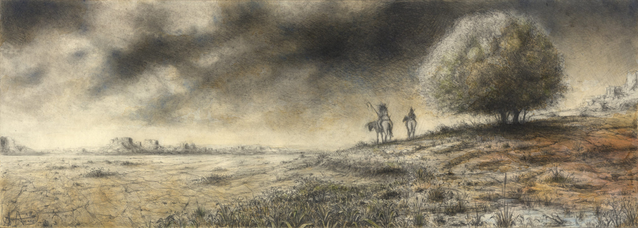 Sicherlich einer meiner schönsten Arbeiten aus dieser Reihe. Mal wieder ausschließlich mit Bleistift, Graphitpulver und ein wenig Kaffee modelliert. Die… Bear´s Belly – Arikara Medical Man
