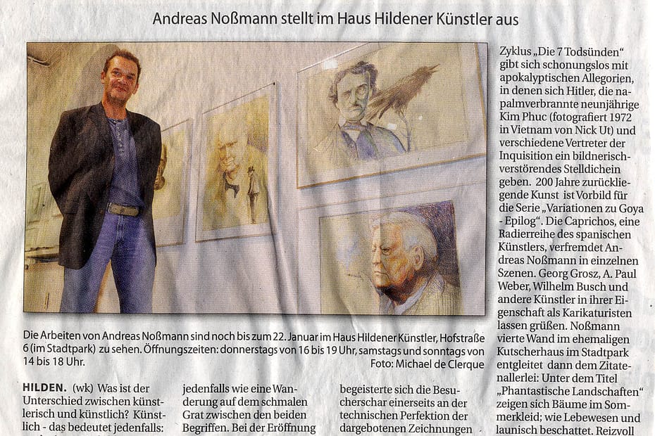 Hilden (RP). Der renommierte Grafiker, Designer und Maler Andreas Noßmann präsentiert im Haus Hildener Künstler seine virtuose Zeichenkunst. Sie sind… Chronist der dunklen Seite des Menschen