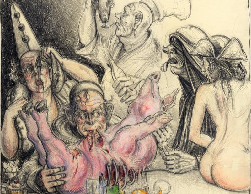 Blutige Wut, Wollust, Neid oder Gefräßigkeit: Künstler Andreas Noßmann (50) stellt auf seinen Bildern die dunkelsten Seiten, die tiefsten Abgründe… Die dunkelsten und tiefsten Abgründe der nackten Menschen