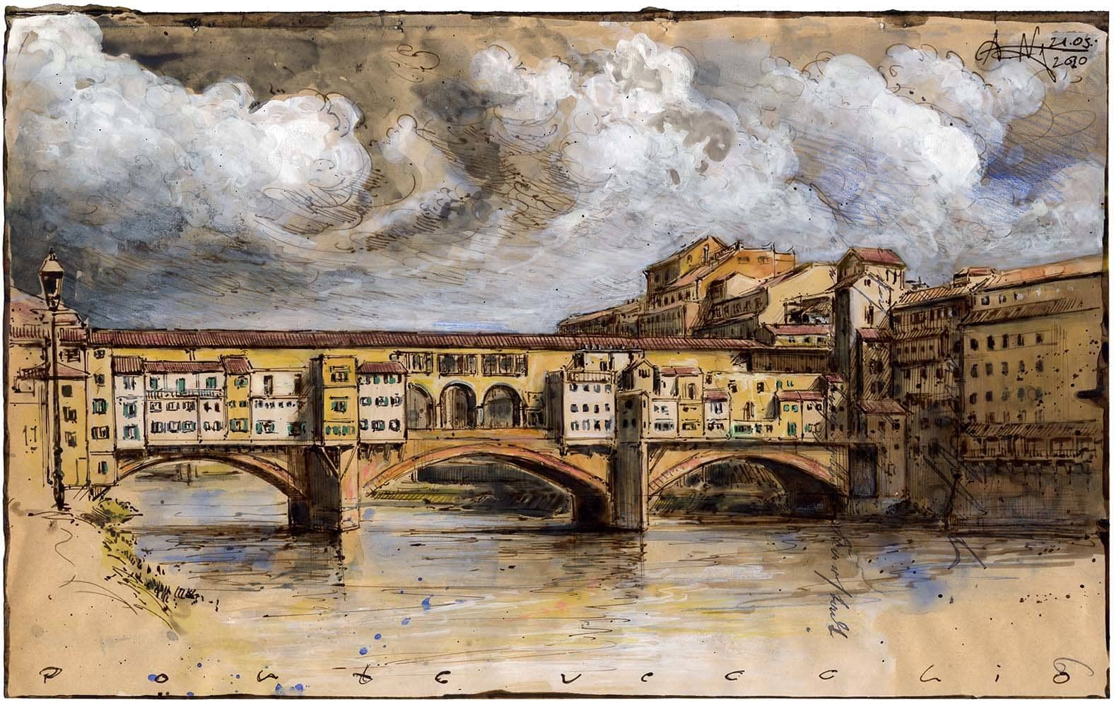 Die Ponte Vecchio, die Brücke der Händler, ist eines der großen Wahrzeichen der Stadt Florenz und vor allem in Zeiten des Massentourismus ein vermeintliches Muss für jeden Besucher. Würde die beliebt, berühmte Brücke allerdings auch heute noch ihre ursprünglichen Bewohner, Handwerker, seitlich rechts und links, beherbergen, würden wohl alle einen großen Bogen um sie machen. Denn als im 14.ten Jahrhundert die Brücke über den Arno ihre noch heute aktuelle Form erhielt, gingen dort vor allem Schlachter und Gerber ihrem übel riechendem Handwerk nach die ihre stinkenden Abfälle, gleich von der Brücke, in den zunehmend von immer größer werdenden Ratten und anderem Ungeziefer verseuchten Fluss warfen.