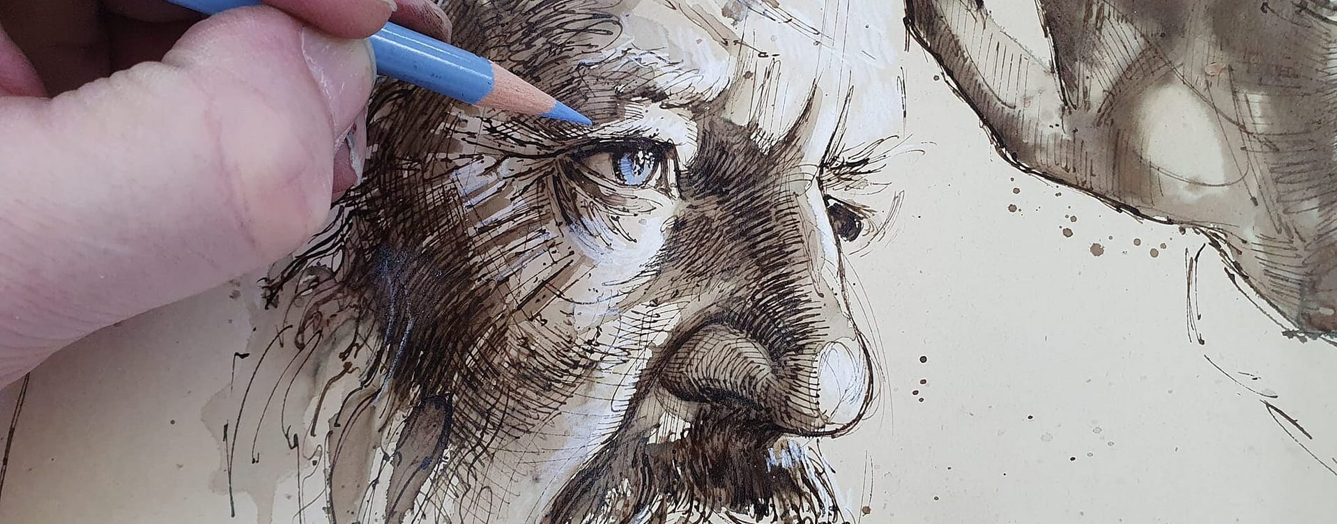 – Kombitechniken (Zeichnung, Bleistift, Tusche, Farbstift und Aquarell)