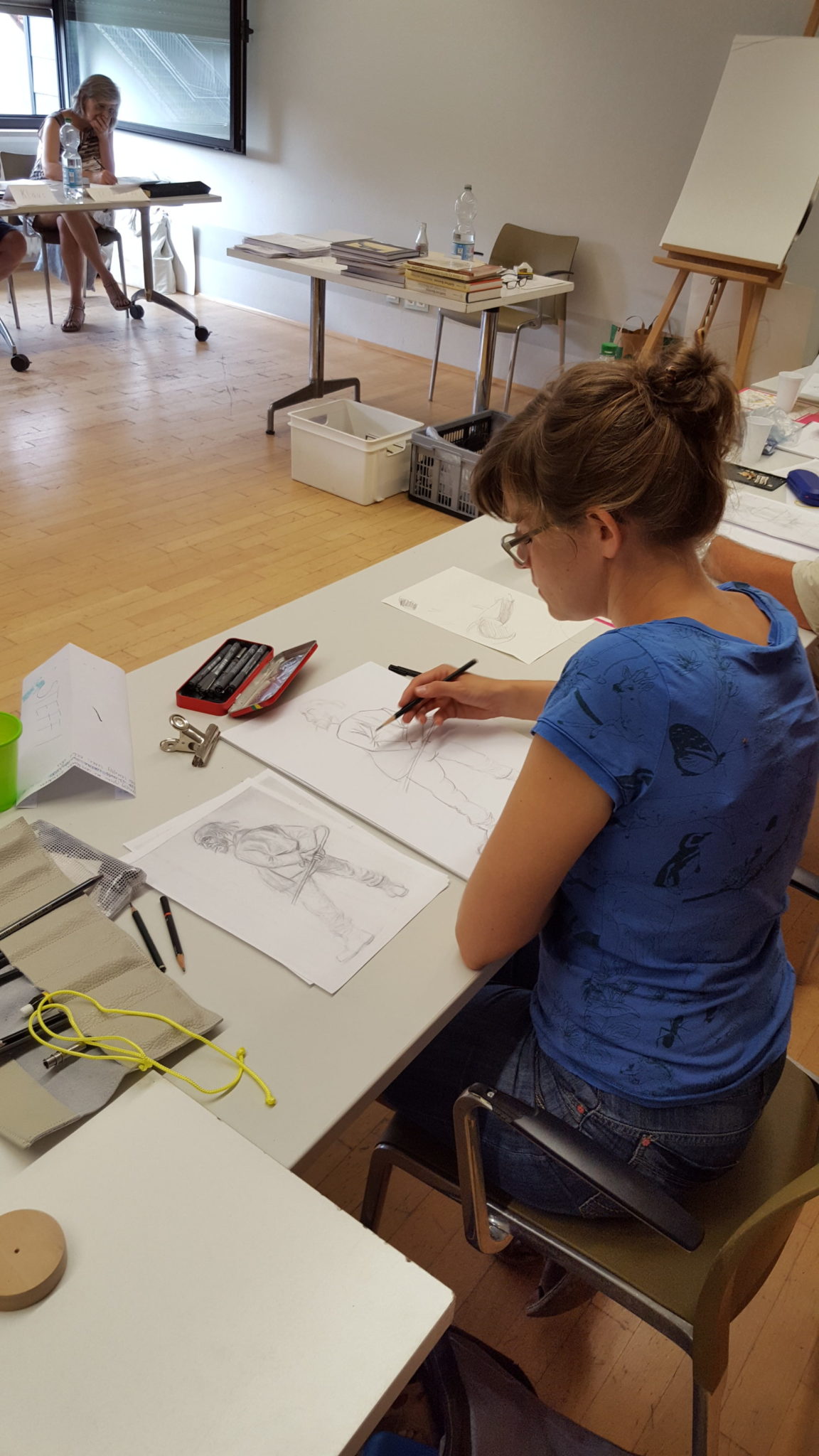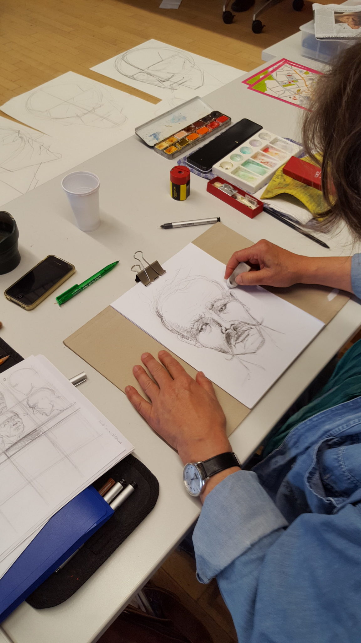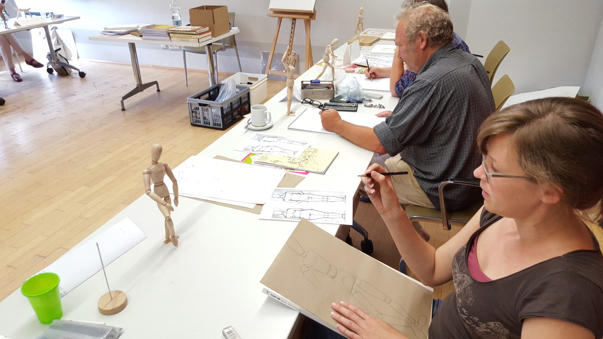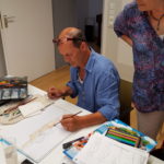 Ein paar Impressionen zum Artistravel Kursus in Hattingen – Thema „Menschen zeichnen“ mit 12 Teilnehmern. Ich wusste ja im Vorfeld wie schwierig es sein würde, diese „Königsdisziplin“ des Zeichnens halbwegs verständlich zu vermitteln. Und dies bei denkbar unterschiedlichsten Voraussetzungen der einzelnen Kursteilnehmer. Dennoch hatte ich am Ende den Eindruck, dass ALLE bei diesem schwierigen Thema ein gutes Stück weiter gekommen sind, auch wenn ich, in meinen Ausführungen, teils ein wenig zu schnell war.