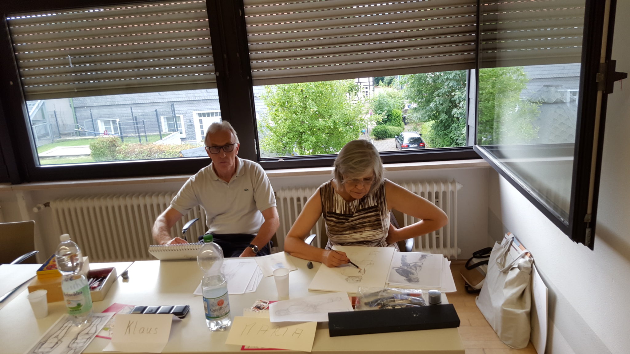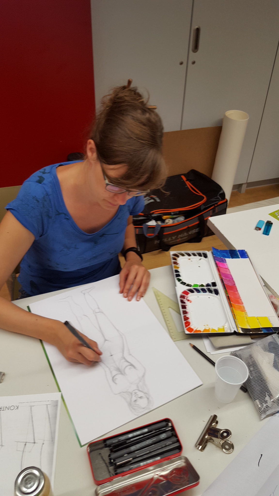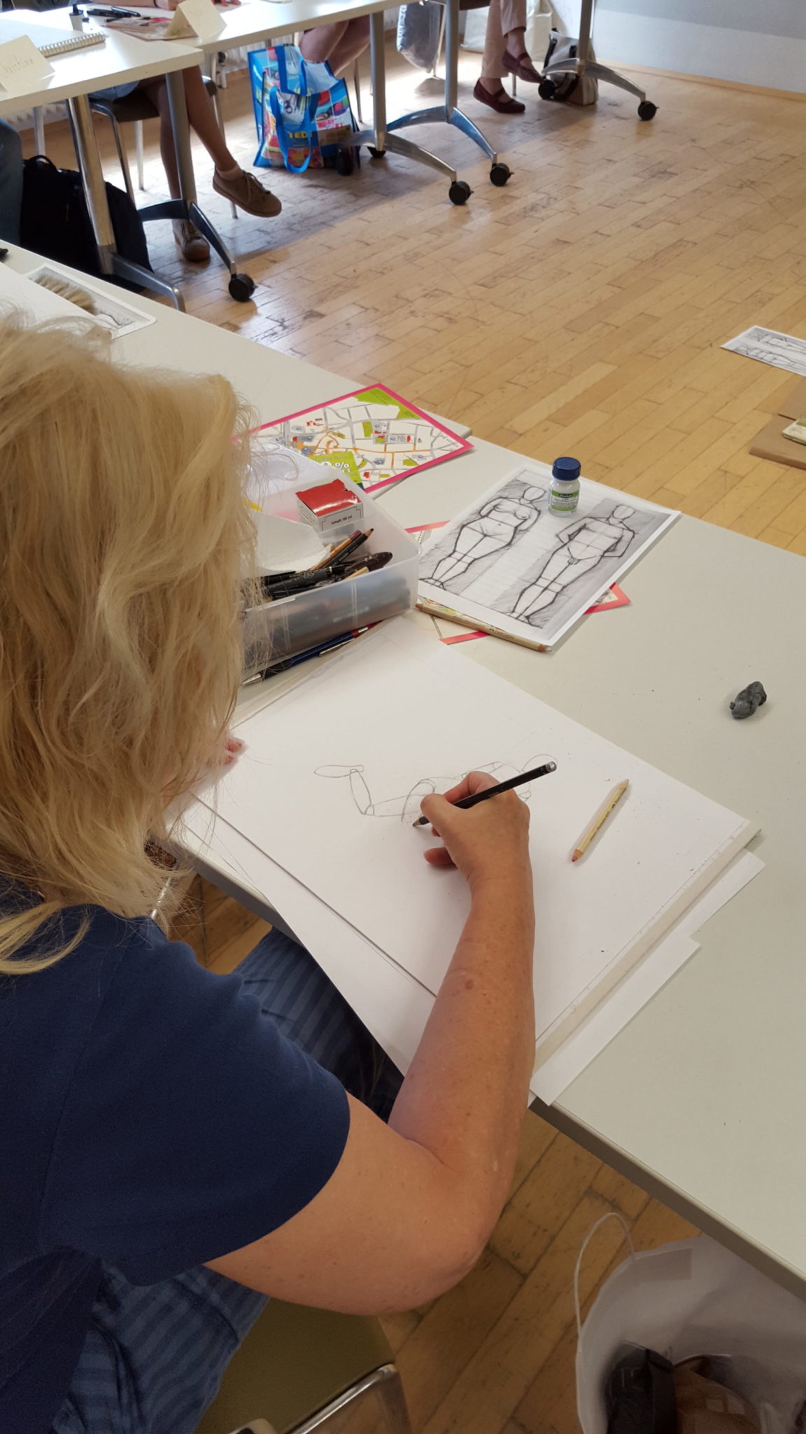 Ein paar Impressionen zum Artistravel Kursus in Hattingen – Thema „Menschen zeichnen“ mit 12 Teilnehmern. Ich wusste ja im Vorfeld wie schwierig es sein würde, diese „Königsdisziplin“ des Zeichnens halbwegs verständlich zu vermitteln. Und dies bei denkbar unterschiedlichsten Voraussetzungen der einzelnen Kursteilnehmer. Dennoch hatte ich am Ende den Eindruck, dass ALLE bei diesem schwierigen Thema ein gutes Stück weiter gekommen sind, auch wenn ich, in meinen Ausführungen, teils ein wenig zu schnell war.