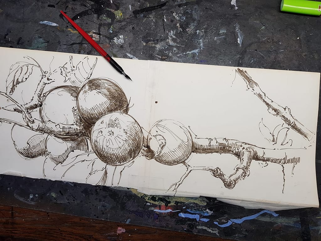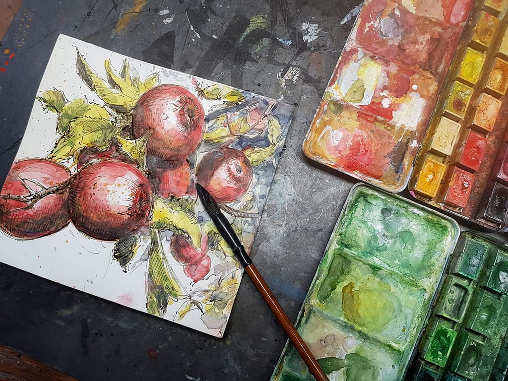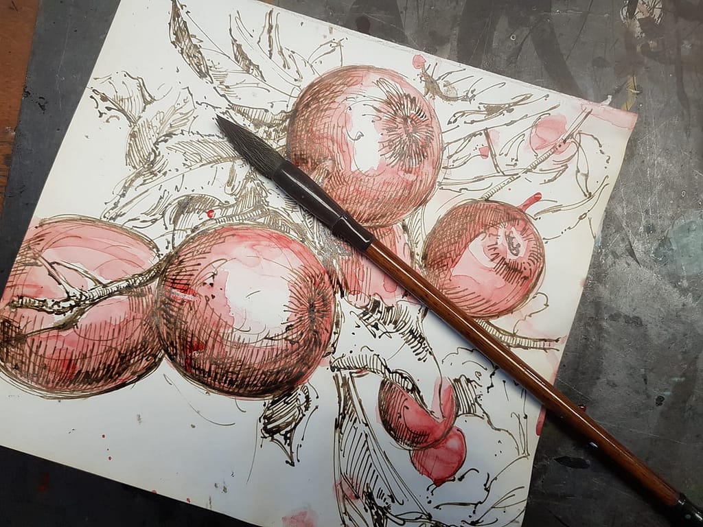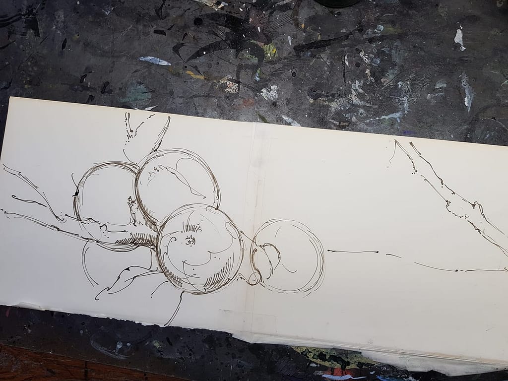 Und weil es so schön war, gleich ein noch zweites Blatt zu diesem leckeren Idyll – und dieses mit dem wirklich einfachen Titel: Äpfel in der Horizontalen …