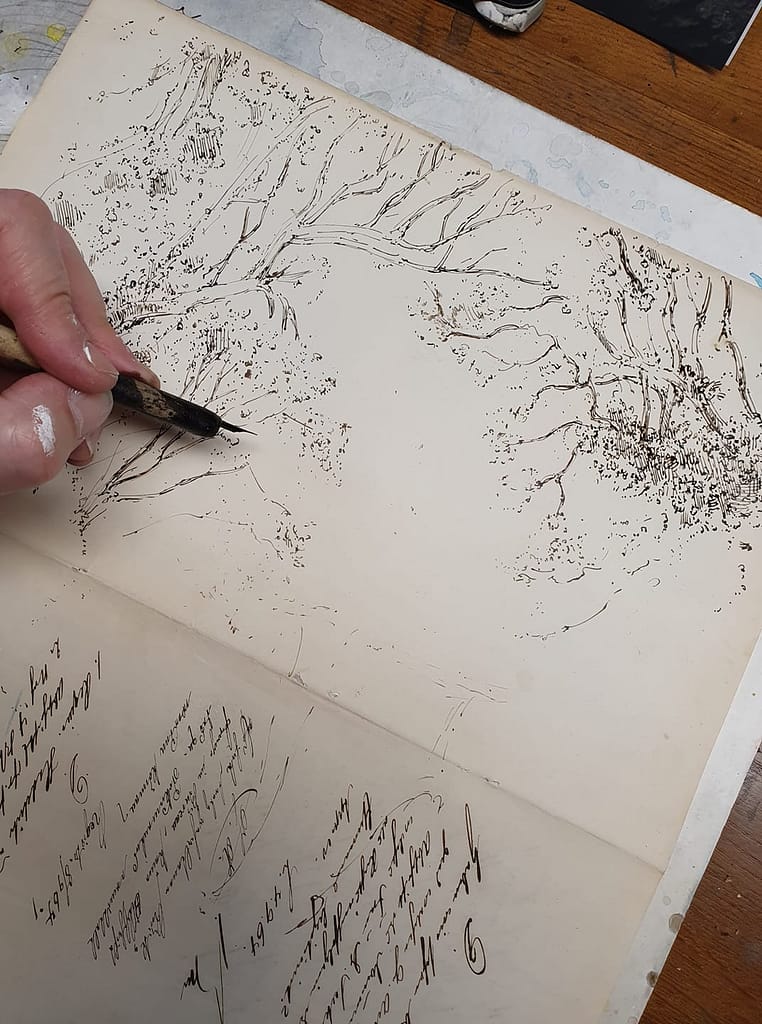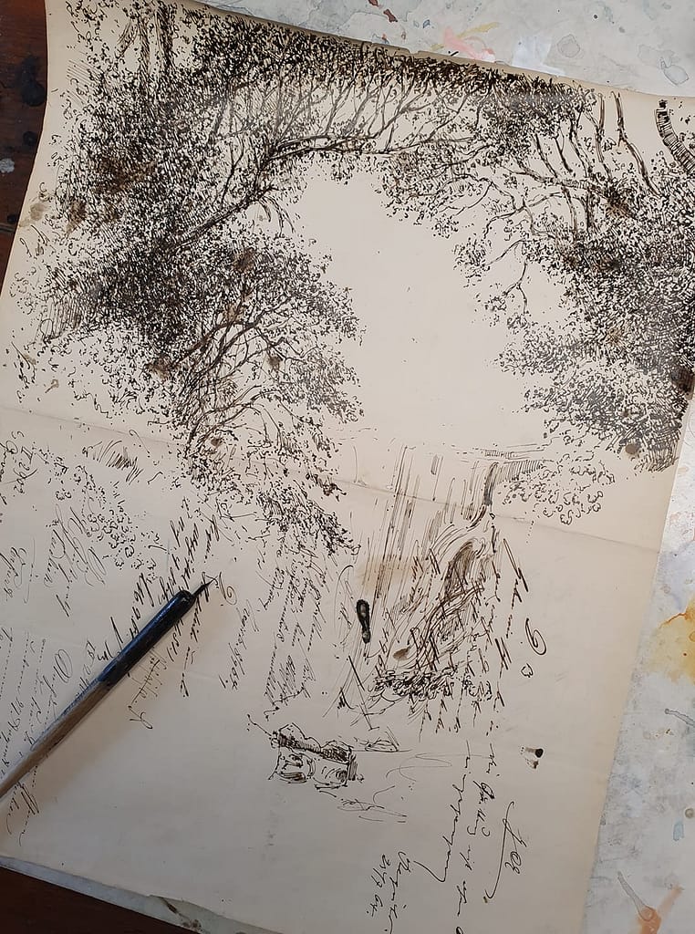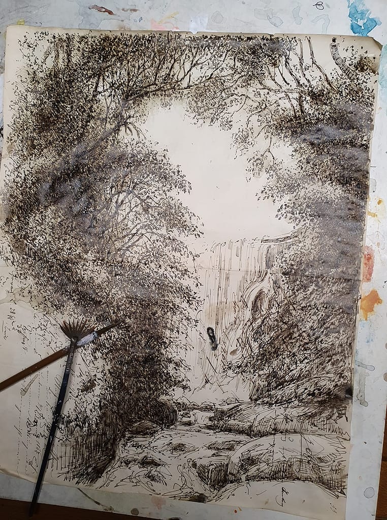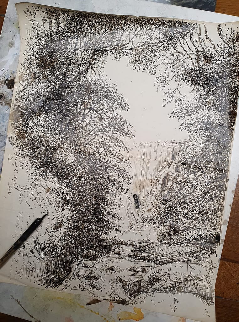 Nach längerer Zeit mal wieder eine etwas größere Landschaftszeichnung, eine Hommage an das sagenumwobene Bruchtal, welches Tolkien Fans sehr wohl vertraut sein dürfte. Am westlichen Rand des Nebengebirges, im Tal des Bruinenflusses gelegen, ist es die Heimat der Elben, Ort des letzten heimeligen Hauses des Herrn Elrond, der Herr der Imladris.