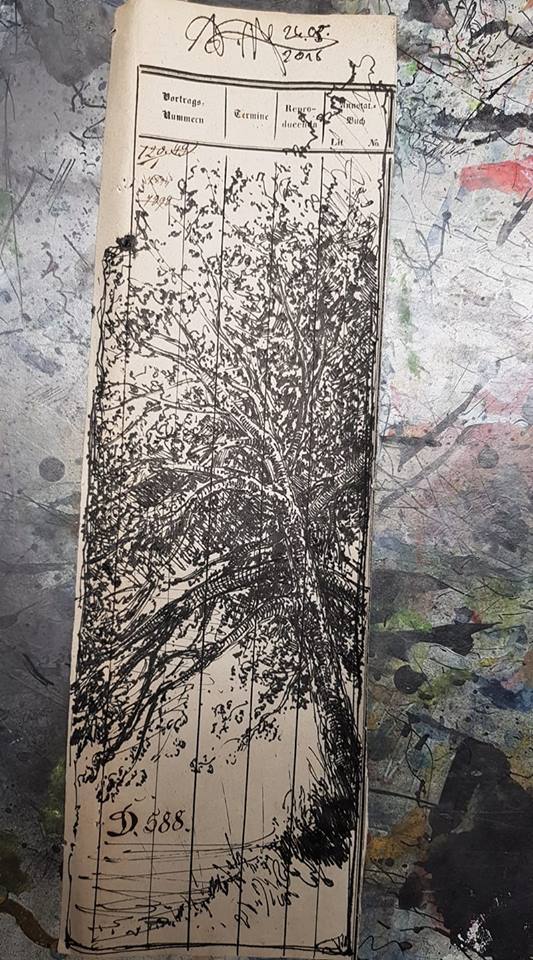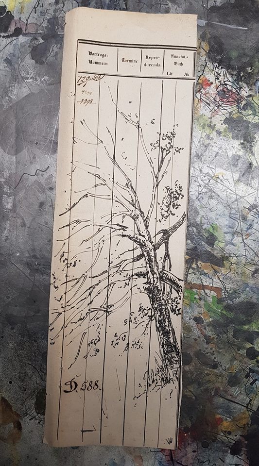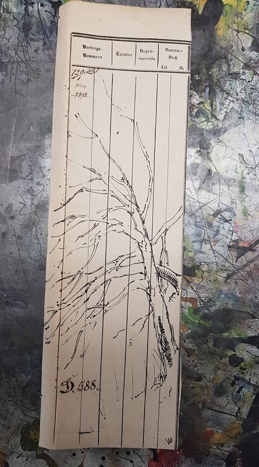 Federzeichnung, Farbstift, Aquarell